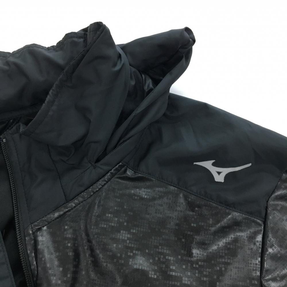 【美品】ミズノゴルフ 切替ジャケット 黒 総柄地模様 サイド無地 フード収納可 メンズ XL ゴルフウェア MIZUNO