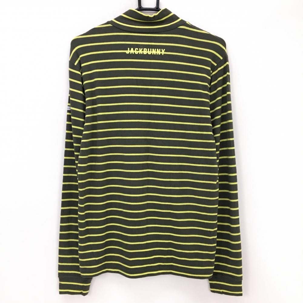 ジャックバニー 長袖ハイネックシャツ カーキ×イエロー ボーダー 胸ロゴ メンズ 4(M) ゴルフウェア Jack Bunny