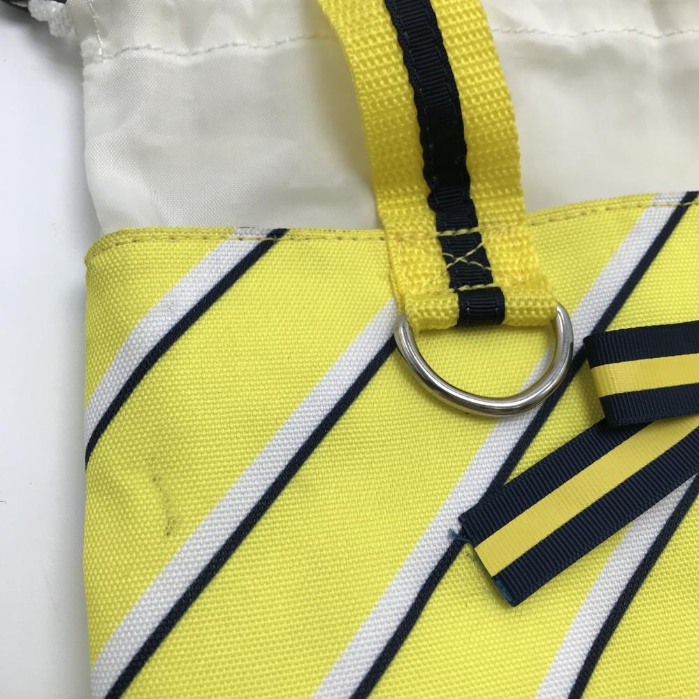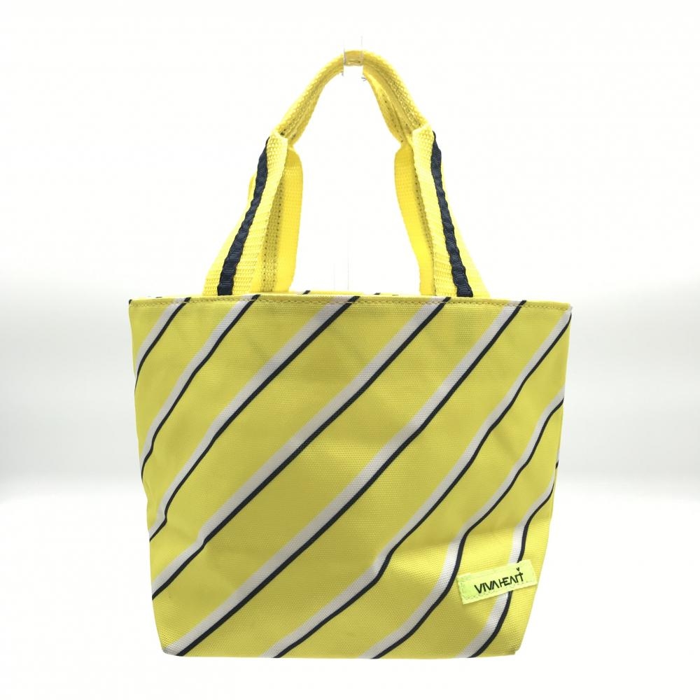 ビバハート カートバッグ イエロー×白 斜めストライプ 開口部巾着 内側ポケット ゴルフ VIVA HEART
