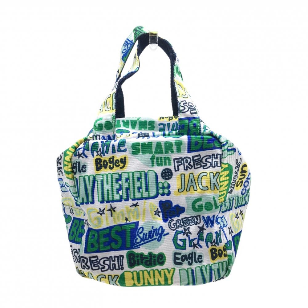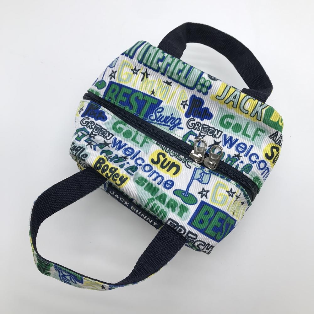 【超美品】ジャックバニー カートバッグ 白×グリーン ロゴ総柄 内ポケット ゴルフ Jack Bunny