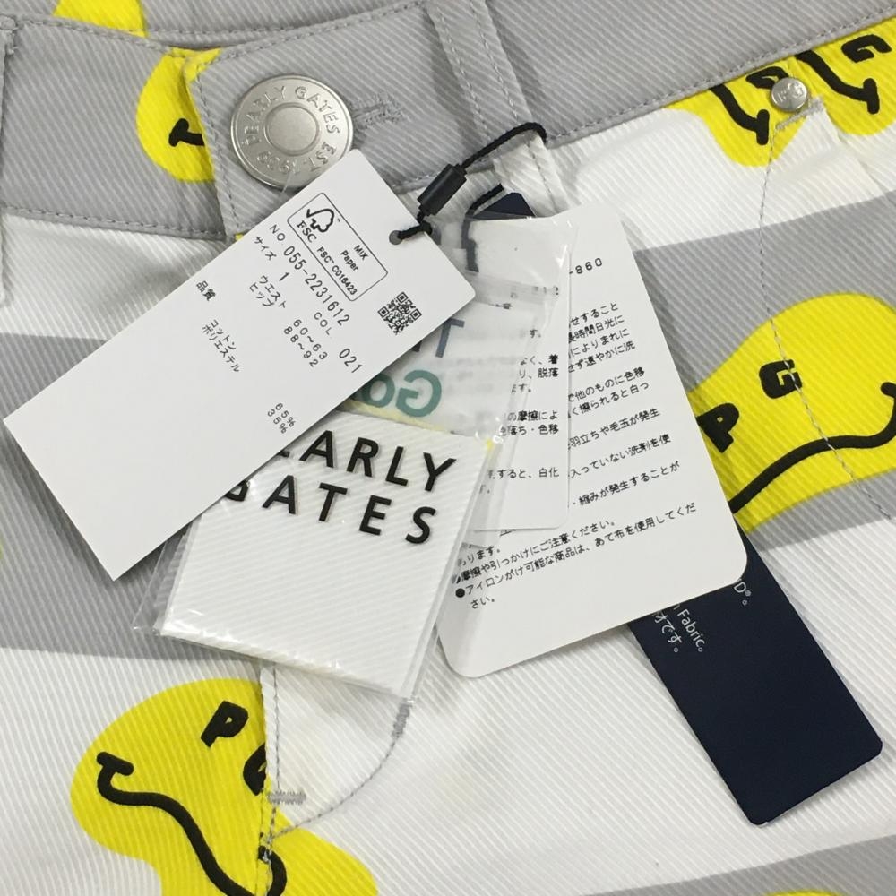 【新品】パーリーゲイツ パンツ グレー×白×イエロー ボーダー TOKENIKO ストレッチ レディース 1(M) ゴルフウェア PEARLY GATES