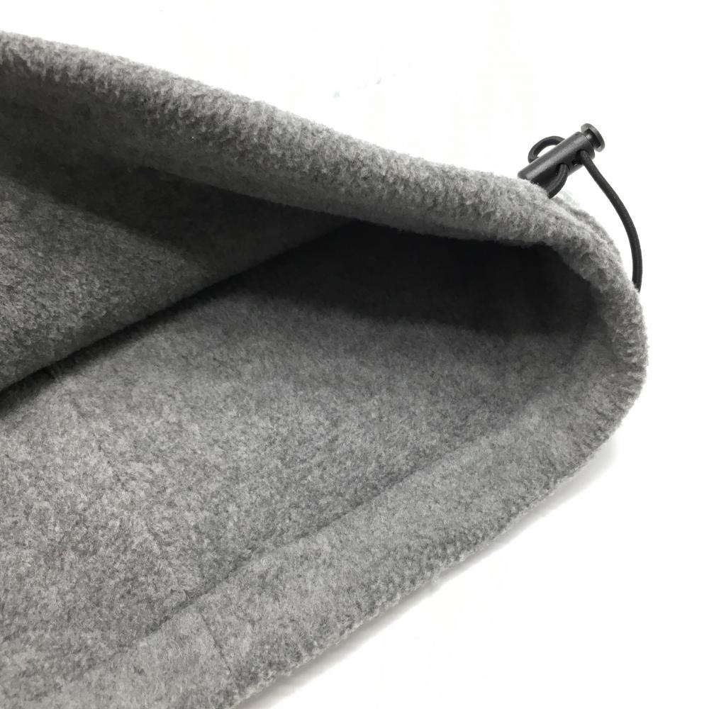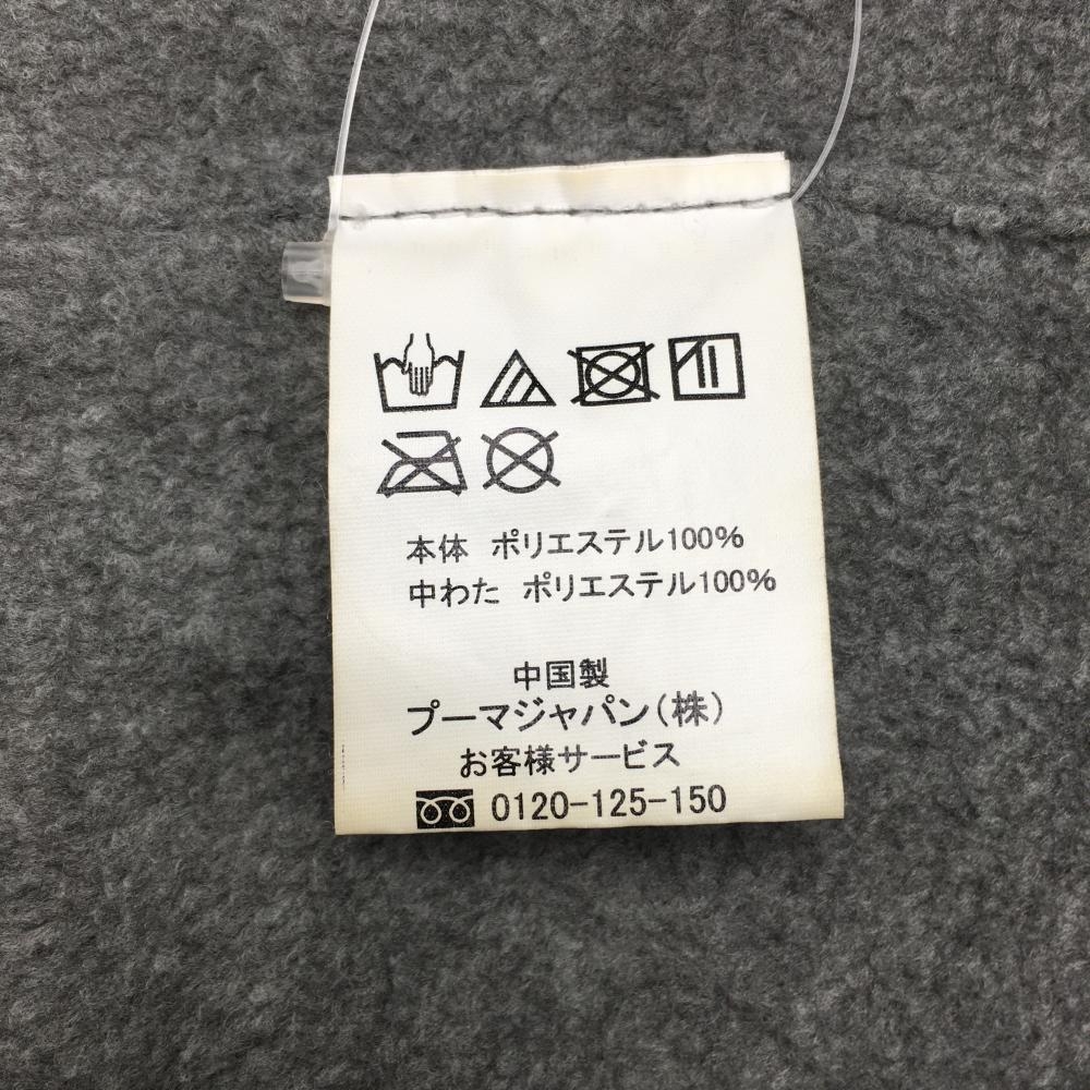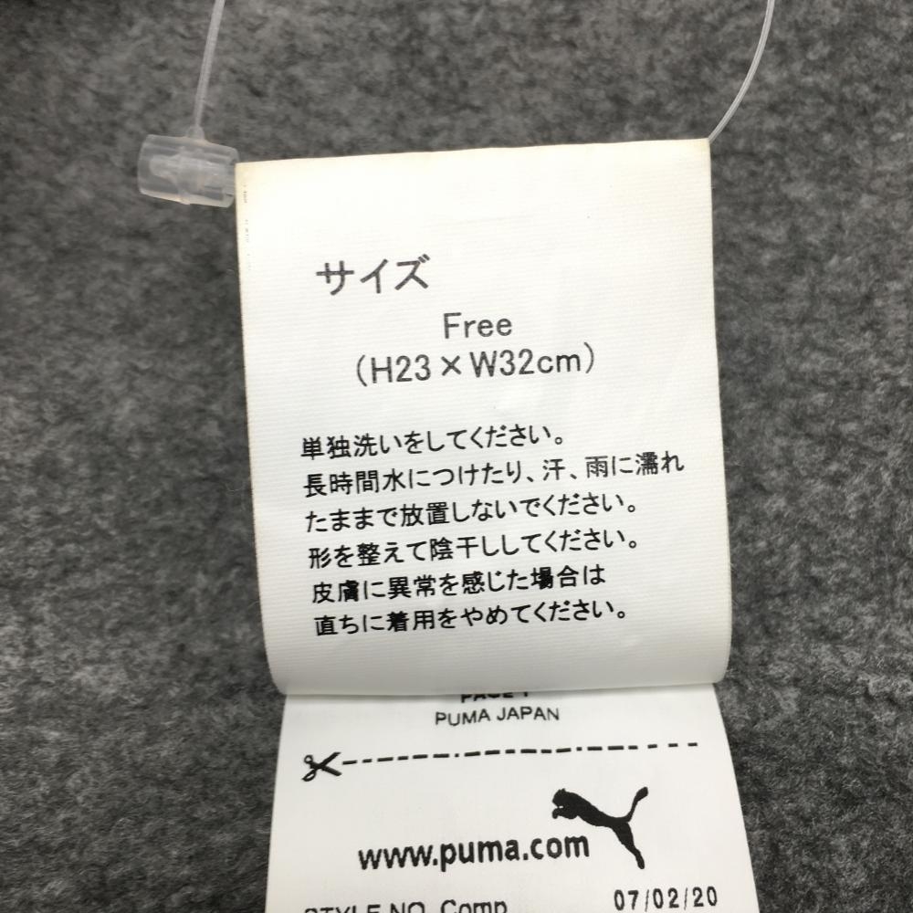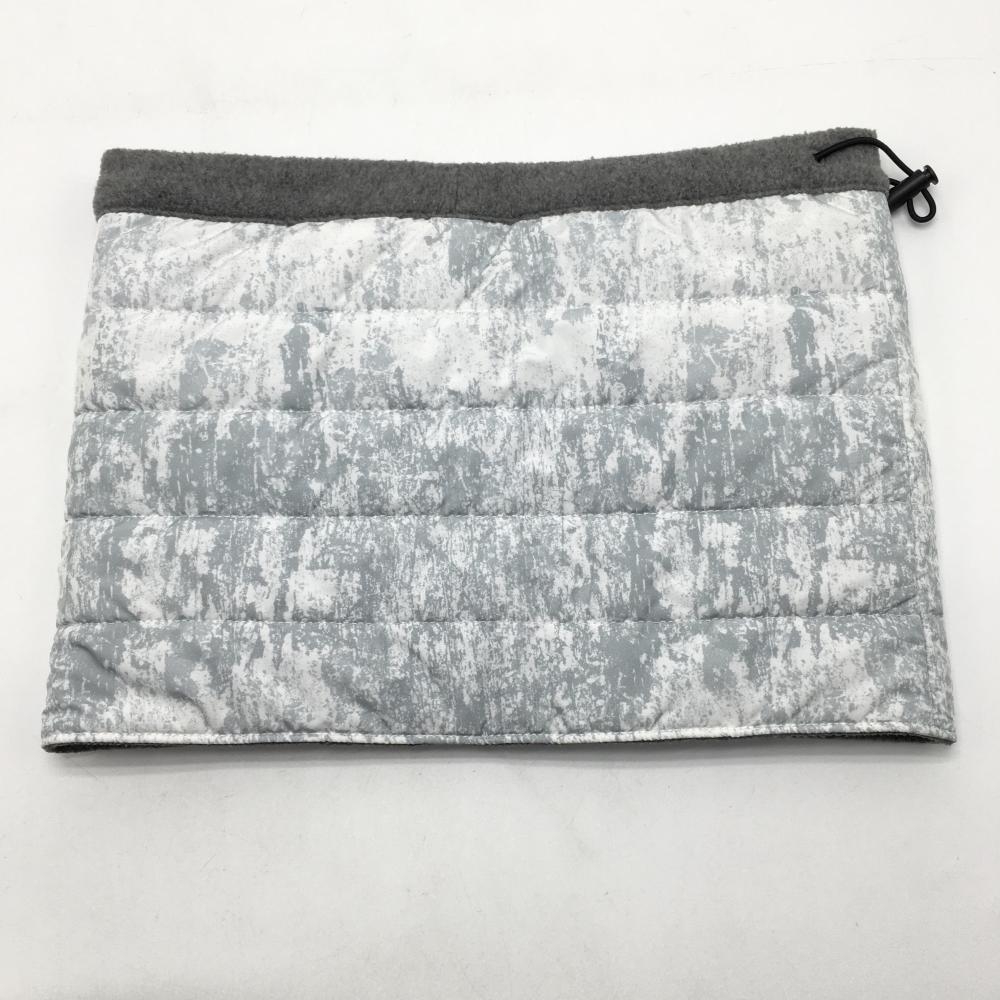 【美品】プーマ 中綿ネックウォーマー 白×ブルーグレー 総柄 ロゴワッペン 裏フリース ドローコード FREE(H23×W32cm) ゴルフウェア PUMA