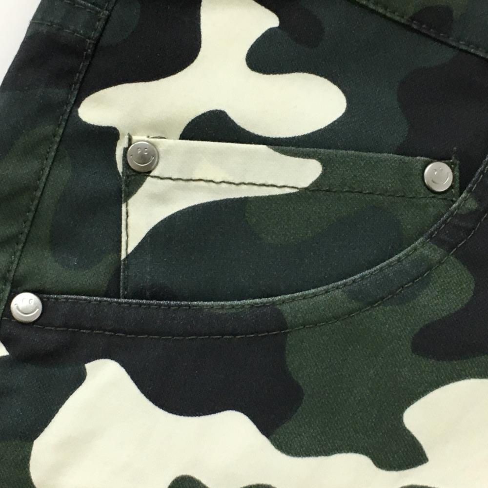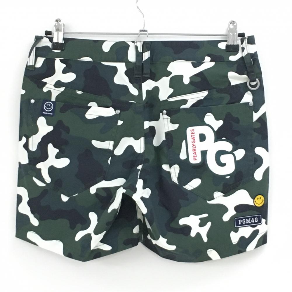 パーリーゲイツ ショートパンツ カーキ×白 カモフラ 迷彩 ニコちゃん スマイル レディース 1(M) ゴルフウェア PEARLY GATES