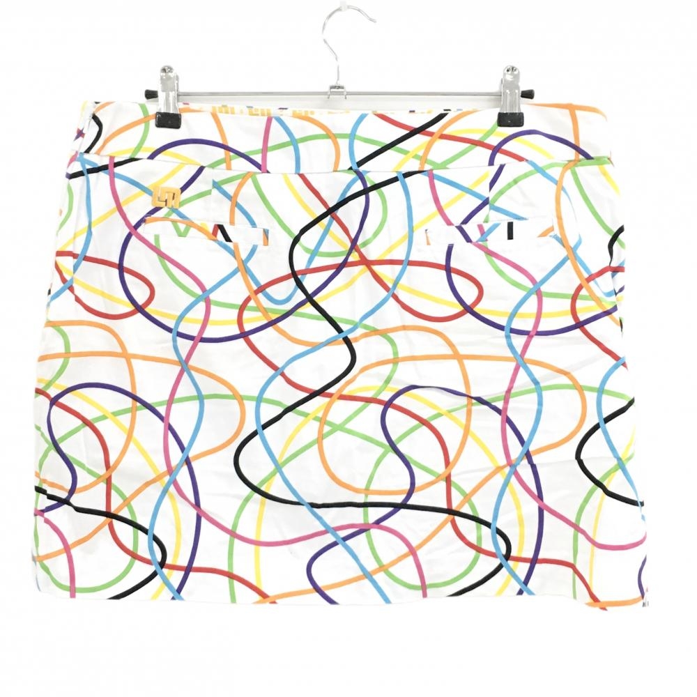 ラウドマウス スカート 白×マルチカラー 総柄 ロープ ロゴ刺しゅう レディース US-16 ゴルフウェア 大きいサイズ LOUDMOUTH