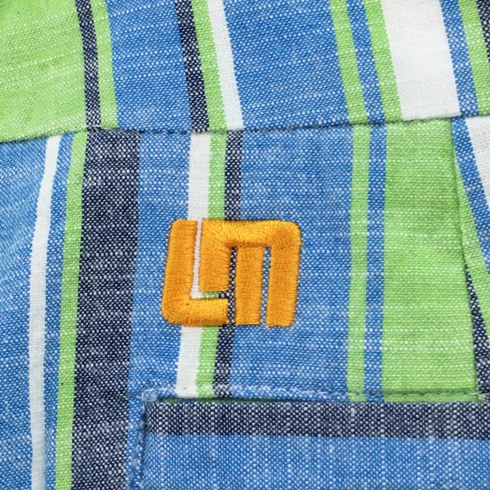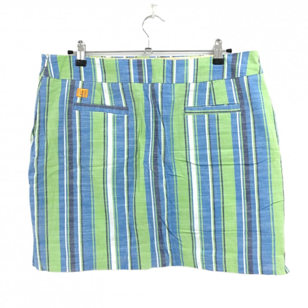 【美品】ラウドマウス スカート ブルー×グリーン ストライプ ロゴ刺しゅう レディース US-14 ゴルフウェア 大きいサイズ LOUDMOUTH