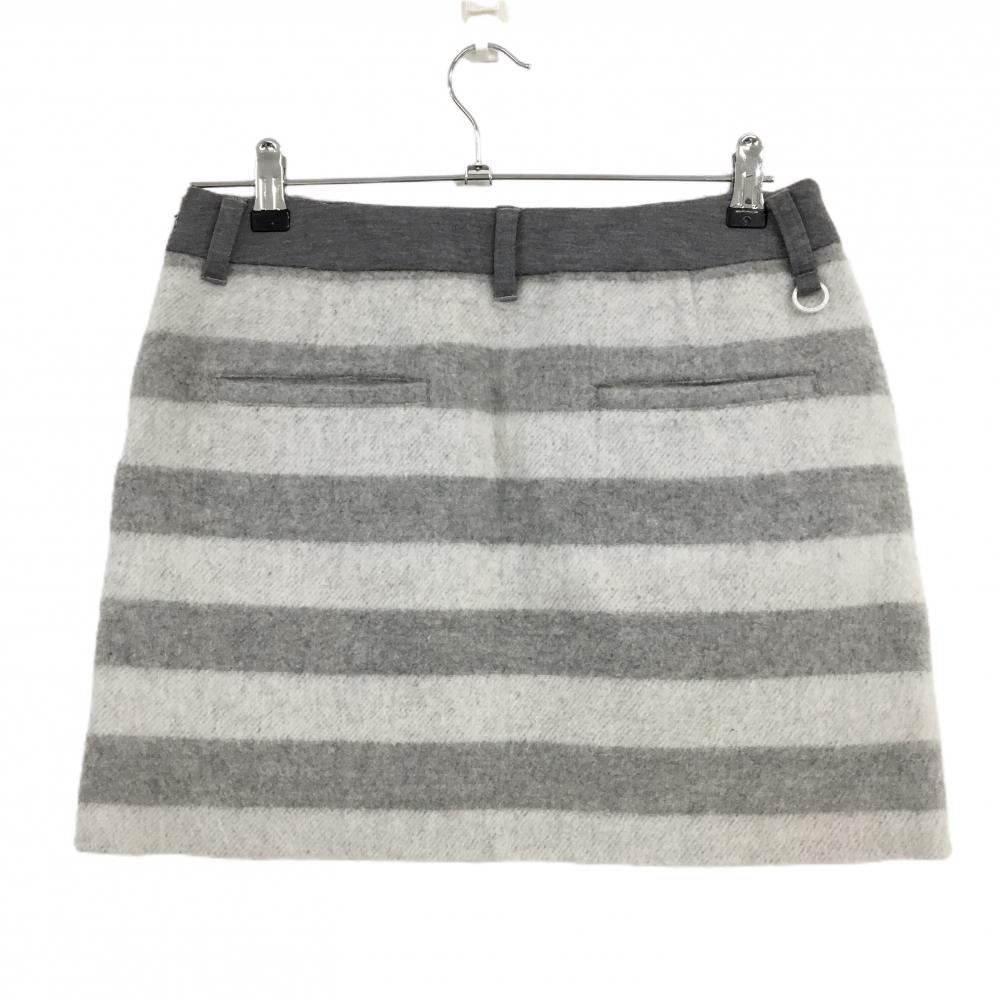 【美品】23区ゴルフ スカート 杢グレー ボーダー シャギー素材 ウール混 裏地付 レディース 67(L) ゴルフウェア 23区