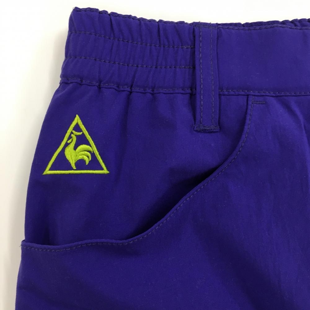 【超美品】ルコックゴルフ カーゴスカート パープル×蛍光グリーン ベルト部一部ゴム レディース 9 ゴルフウェア le coq sportif
