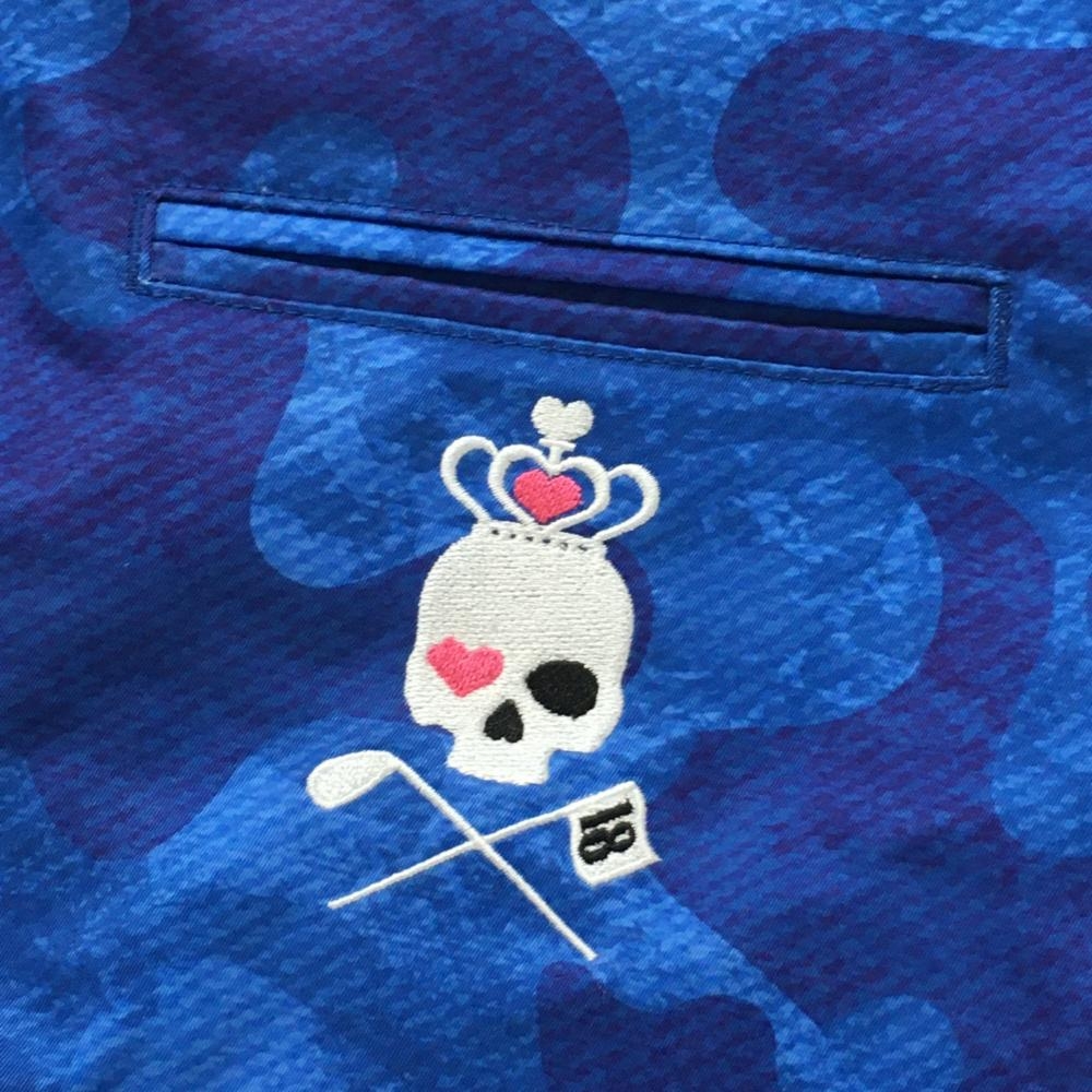 【超美品】バーディーハント スカート ブルー×パープル系 カモフラ風 バックロゴ刺しゅう レディース LL ゴルフウェア Birdie hunt