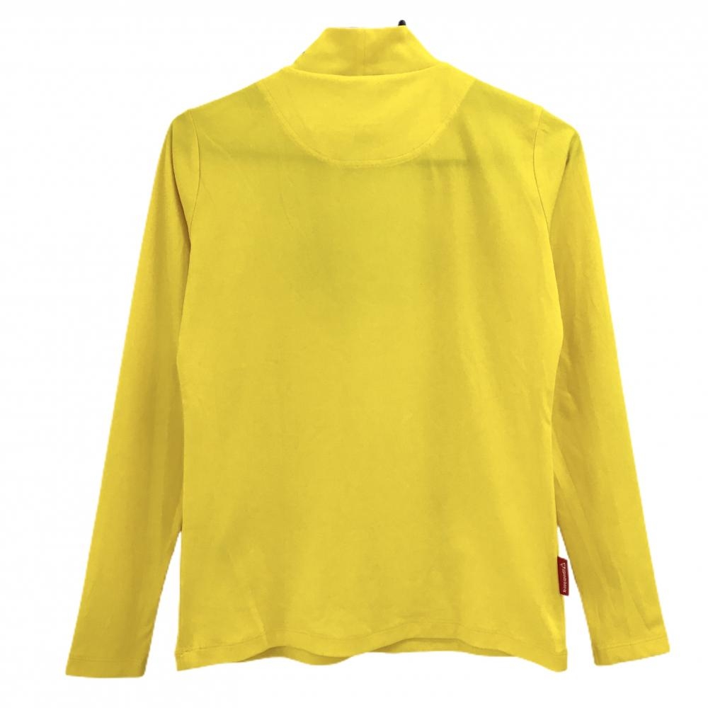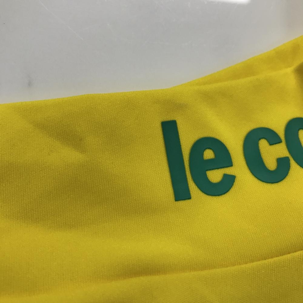 【美品】ルコックゴルフ 長袖ハイネックシャツ イエロー×グリーン フロントロゴ レディース M ゴルフウェア le coq sportif