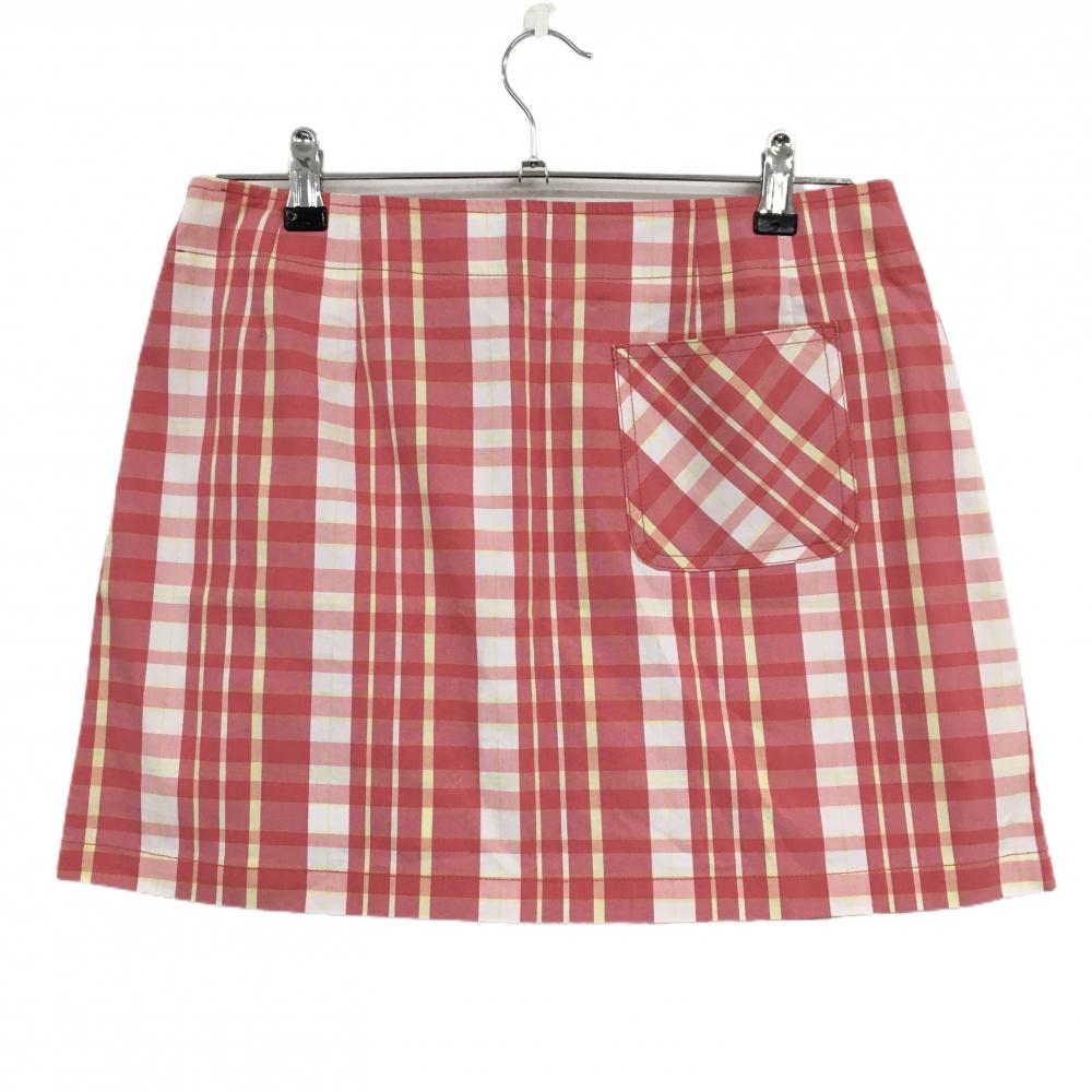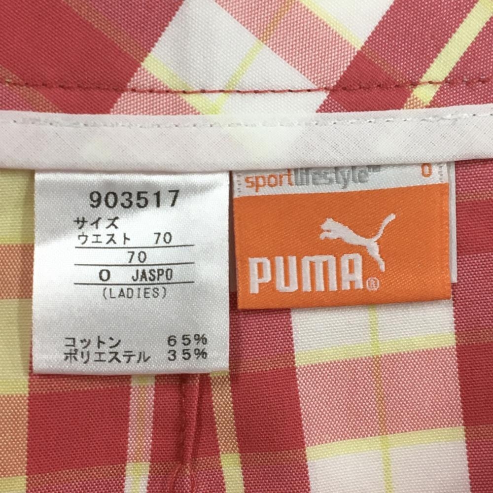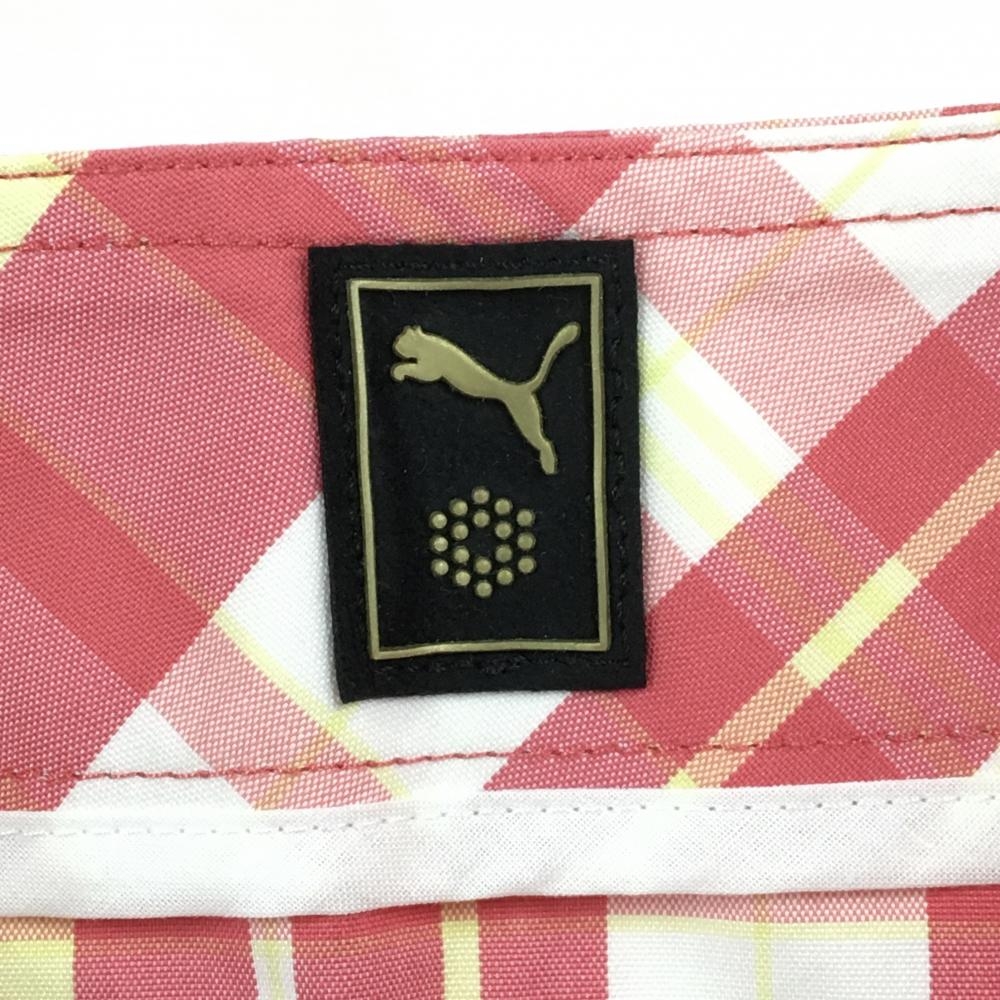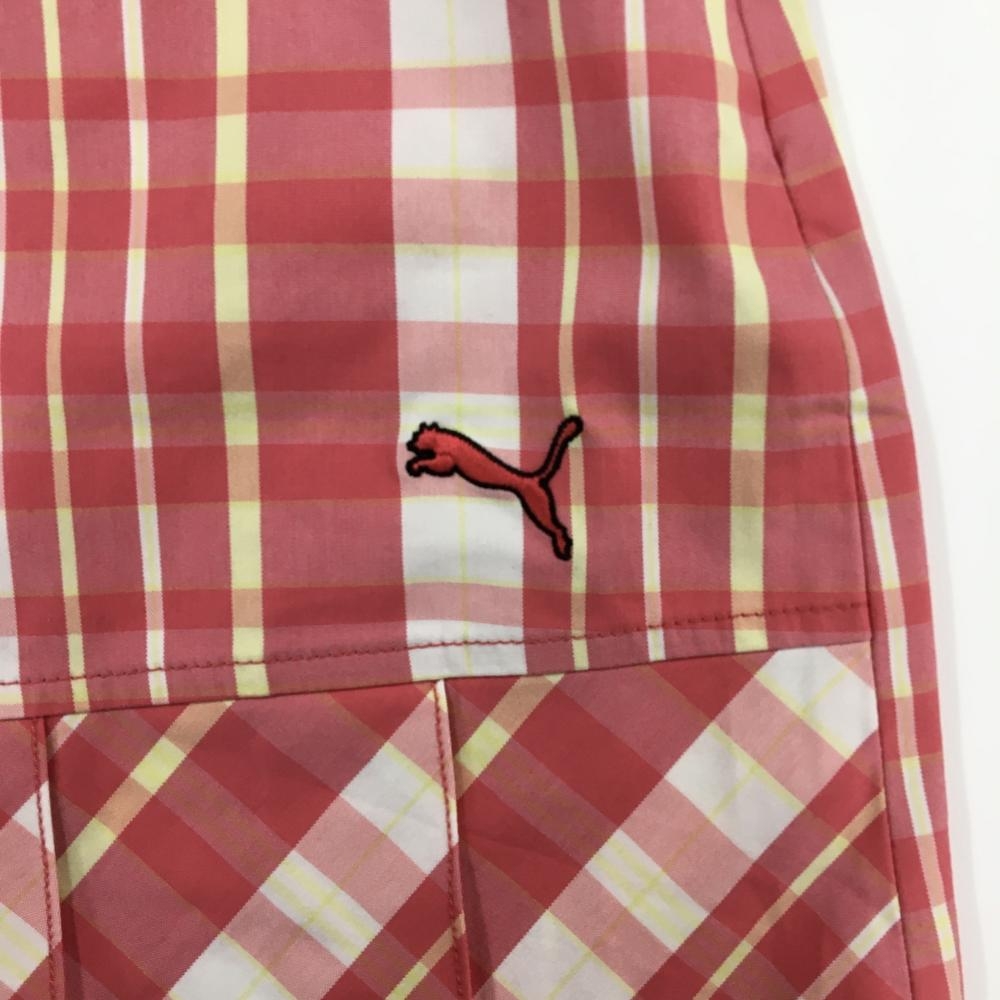 【超美品】プーマ スカート ピンク×白 チェック 裾プリーツ ロゴ刺しゅう レディース O ゴルフウェア PUMA