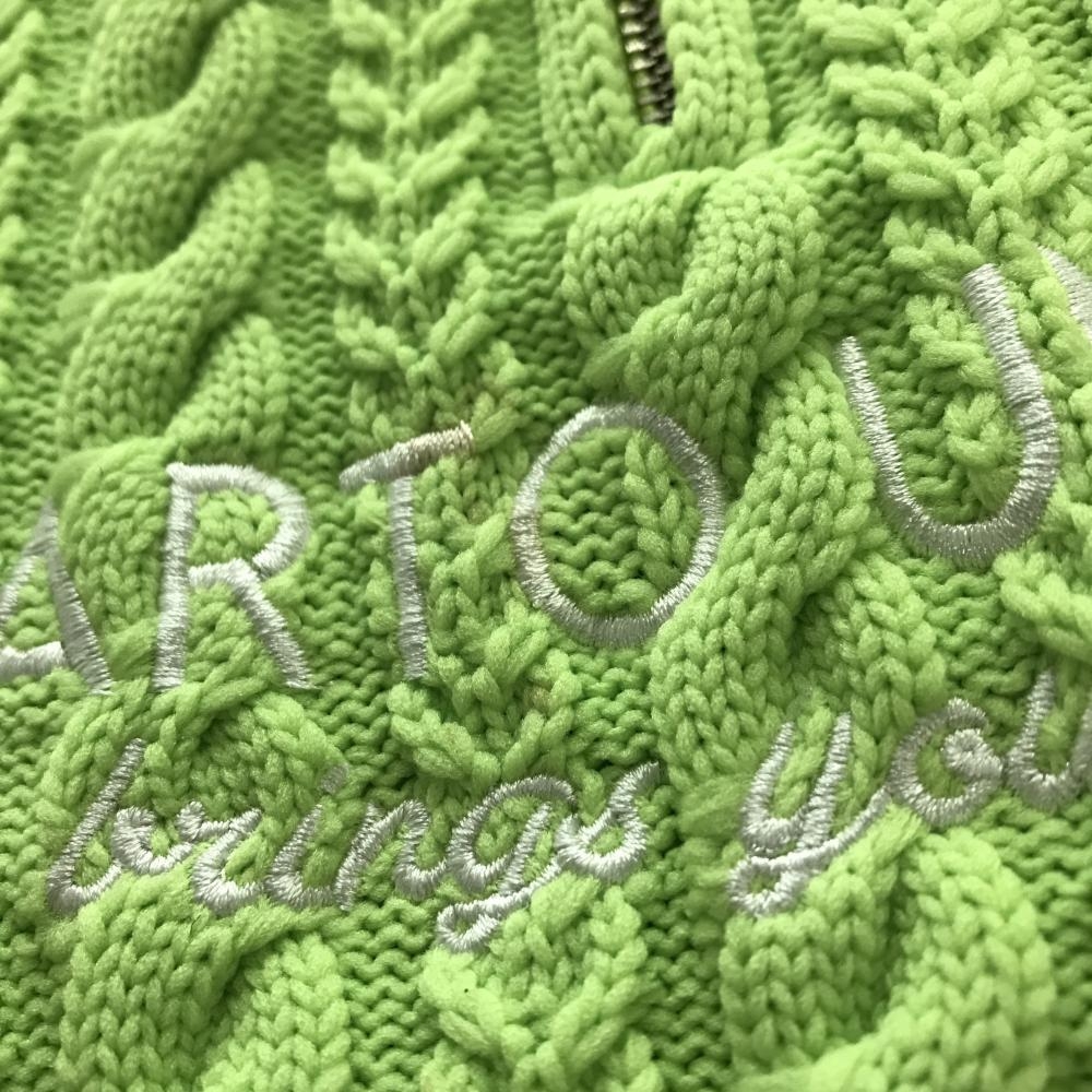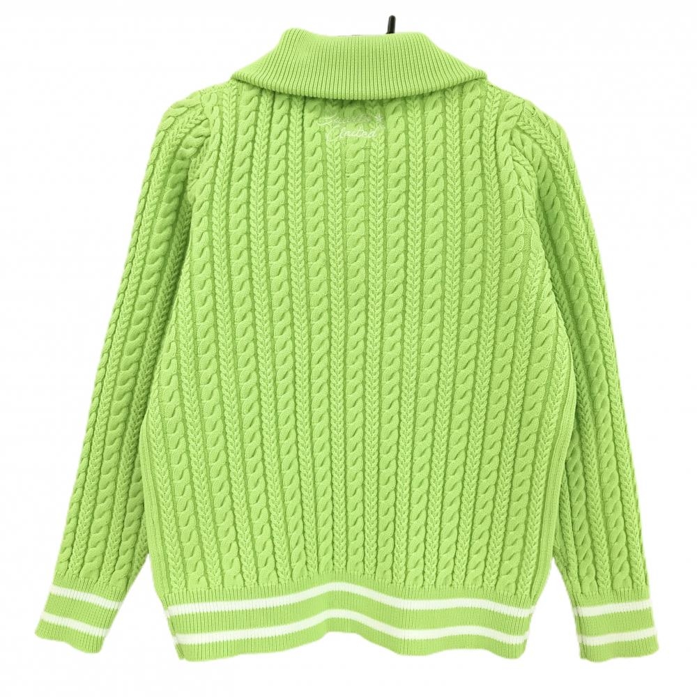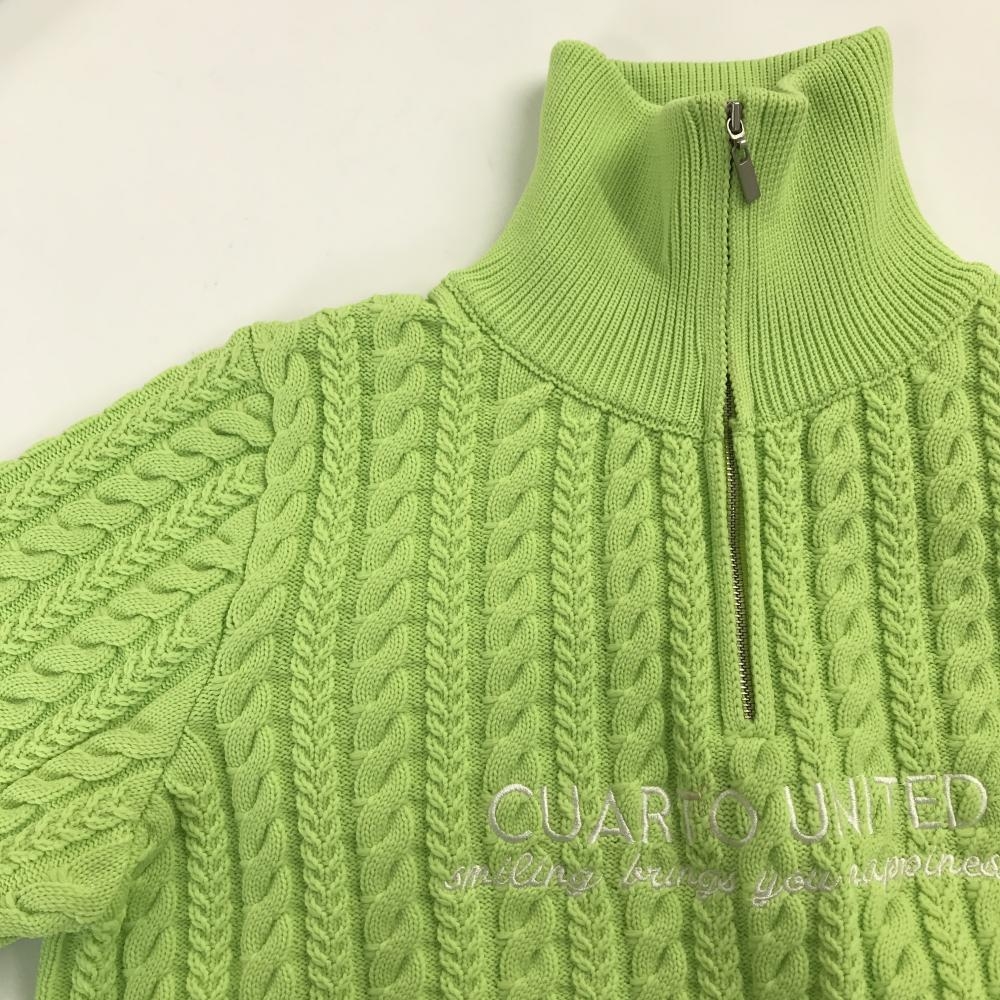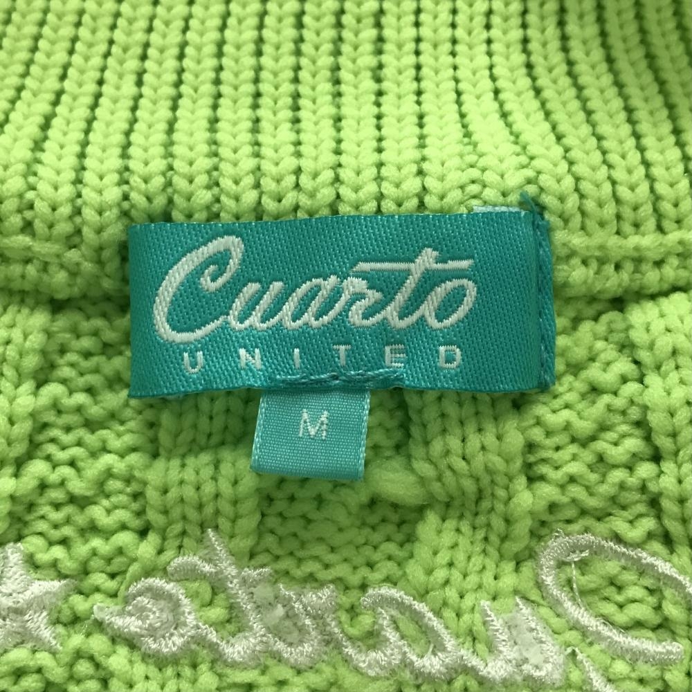 【美品】クアルトユナイテッド ハイネックセーター ライトグリーン ハーフジップ ケーブル編み レディース M ゴルフウェア CUARTO UNITED