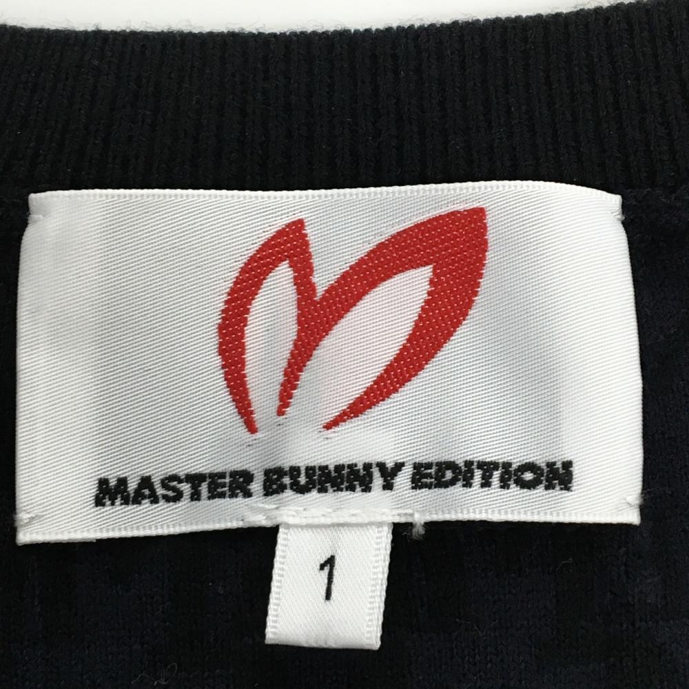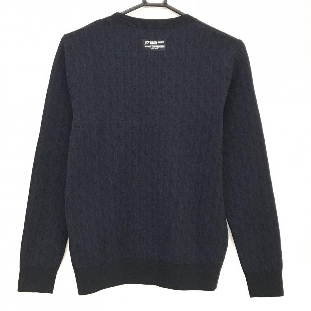 【超美品】マスターバニー セーター 黒×ネイビー ロゴ総柄 ウール混 レディース 1(M) ゴルフウェア MASTER BUNNY EDITION