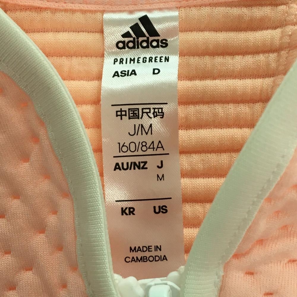 アディダス ジャケット サーモンピンク 凹凸生地 背面ロゴ レディース M ゴルフウェア adidas