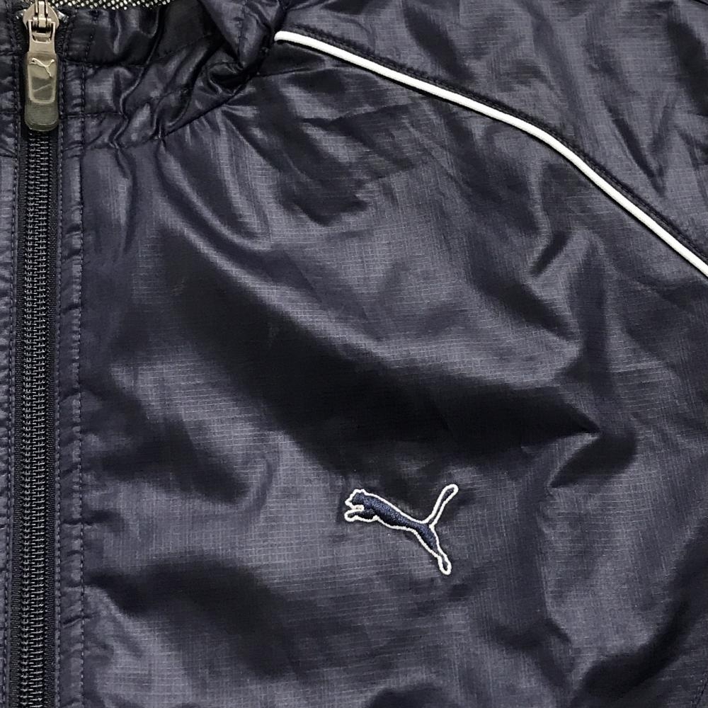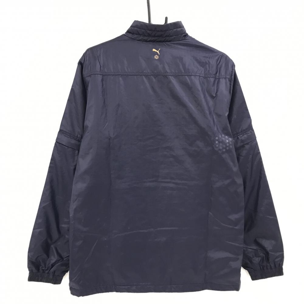 【美品】プーマ 2WAY中綿ジャケット ダークネイビー 肩パイピングライン 袖着脱可 ロゴ刺しゅう 収納袋付き メンズ O ゴルフウェア PUMA