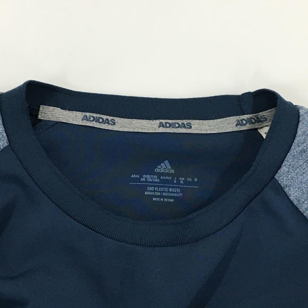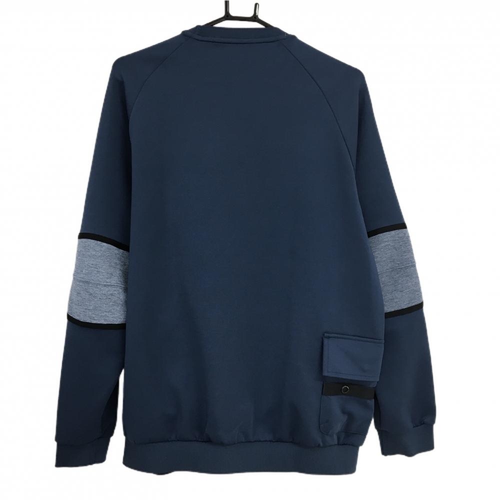 【美品】アディダス トレーナー ダークブルー×杢ブルー 複数ポケット メンズ O ゴルフウェア adidas