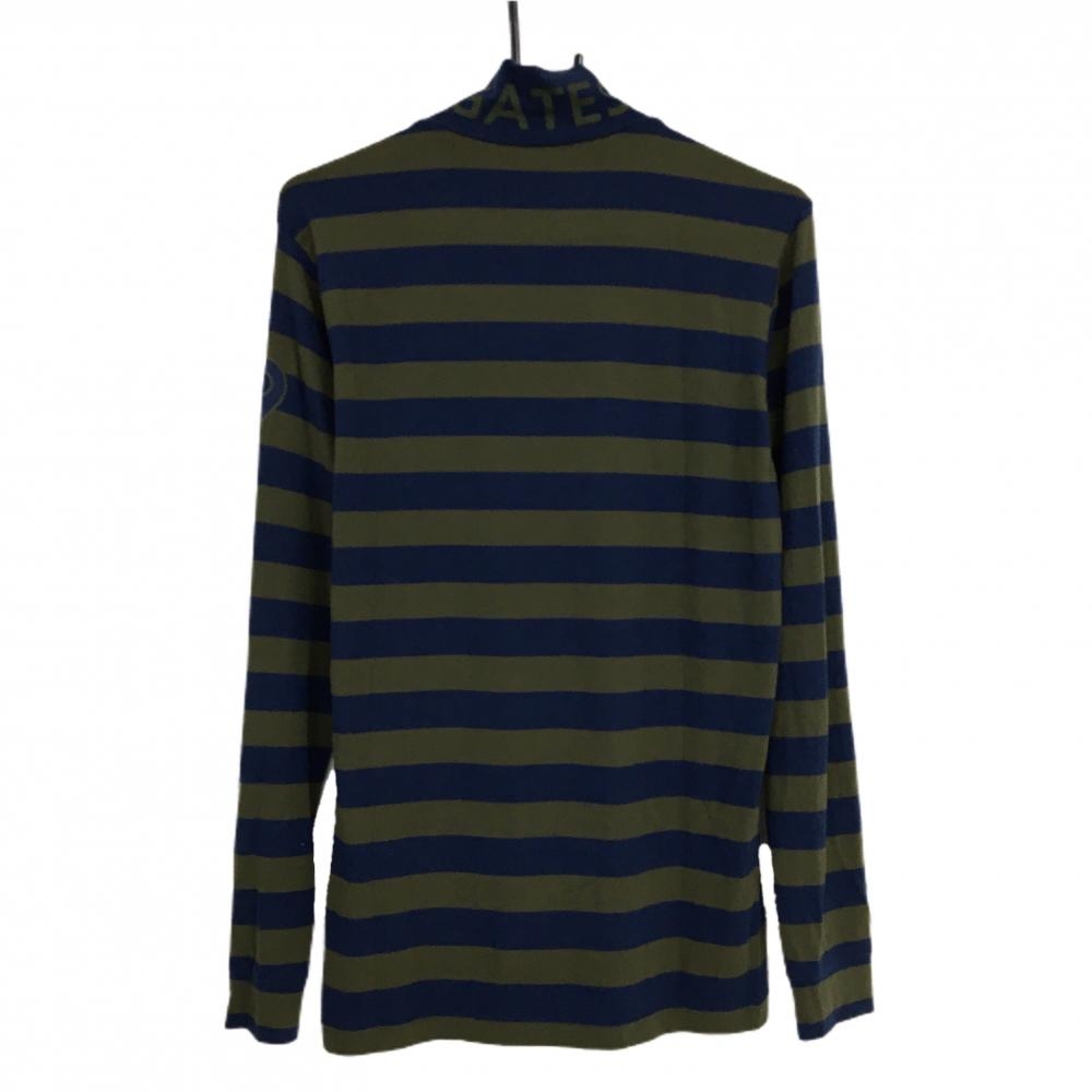 パーリーゲイツ 長袖ハイネックシャツ カーキ×ネイビー ボーダー ロゴプリント メンズ 5(L) ゴルフウェア PEARLY GATES