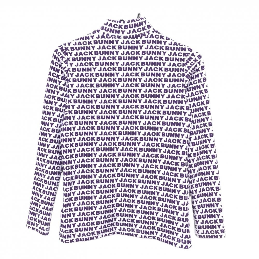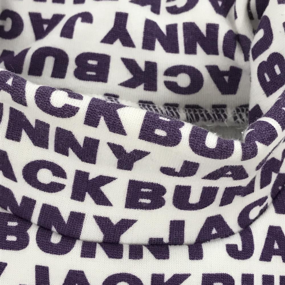 ジャックバニー 長袖ハイネックシャツ 白×パープル ロゴ総柄 裏起毛 レディース 0(S) ゴルフウェア Jack Bunny