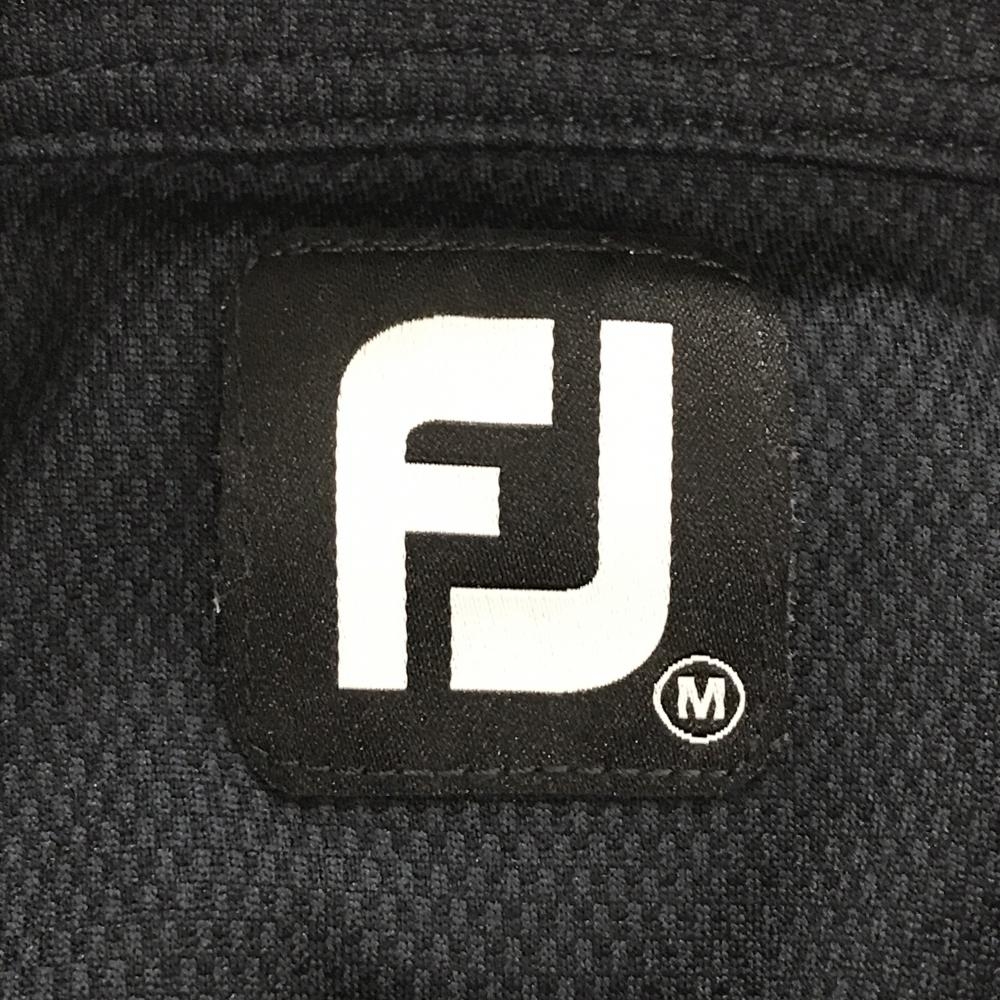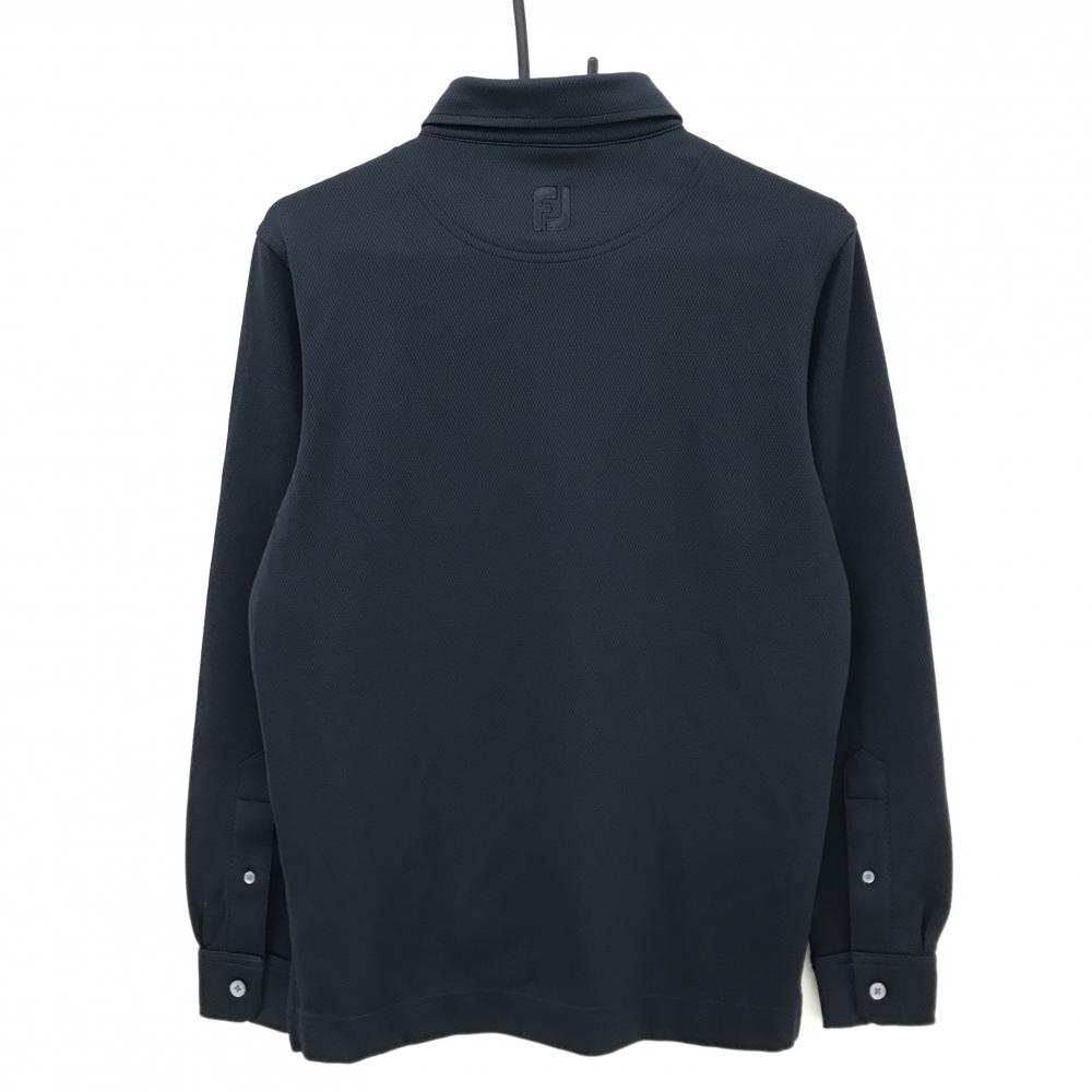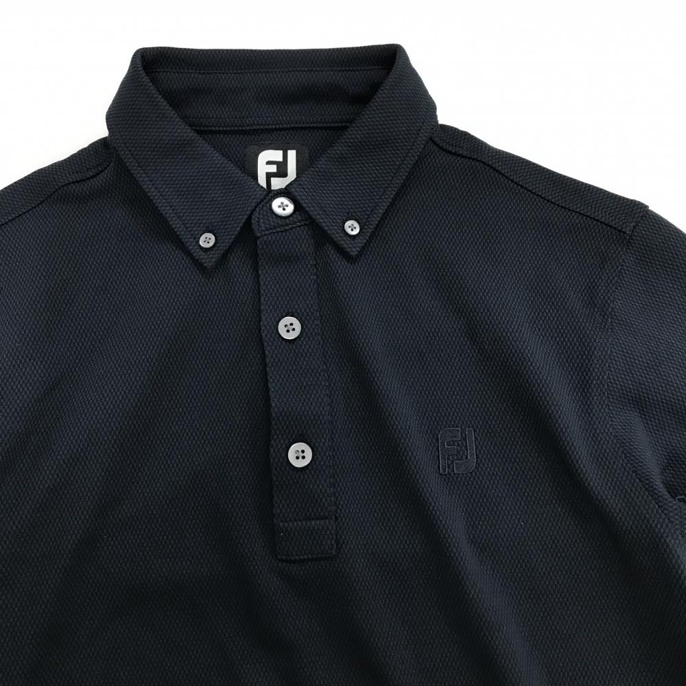【美品】フットジョイ 長袖ポロシャツ ネイビー 地模様 ロゴ刺しゅう ボタンダウン メンズ M ゴルフウェア FootJoy