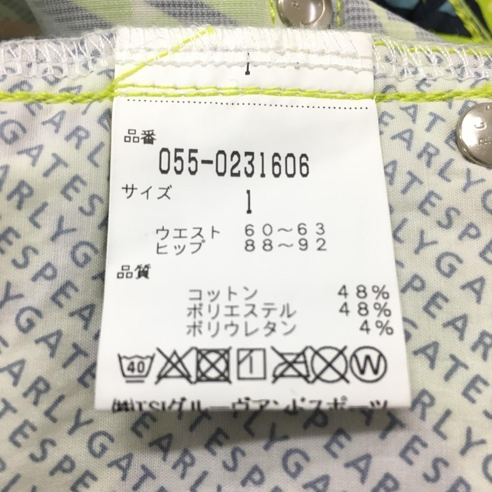 【超美品】パーリーゲイツ パンツ ライトグリーン×ライトブルー ワニ柄 ティー装着可 レディース 1(M) ゴルフウェア PEARLY GATES