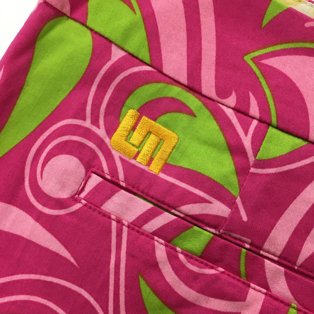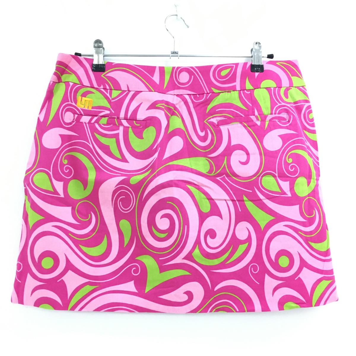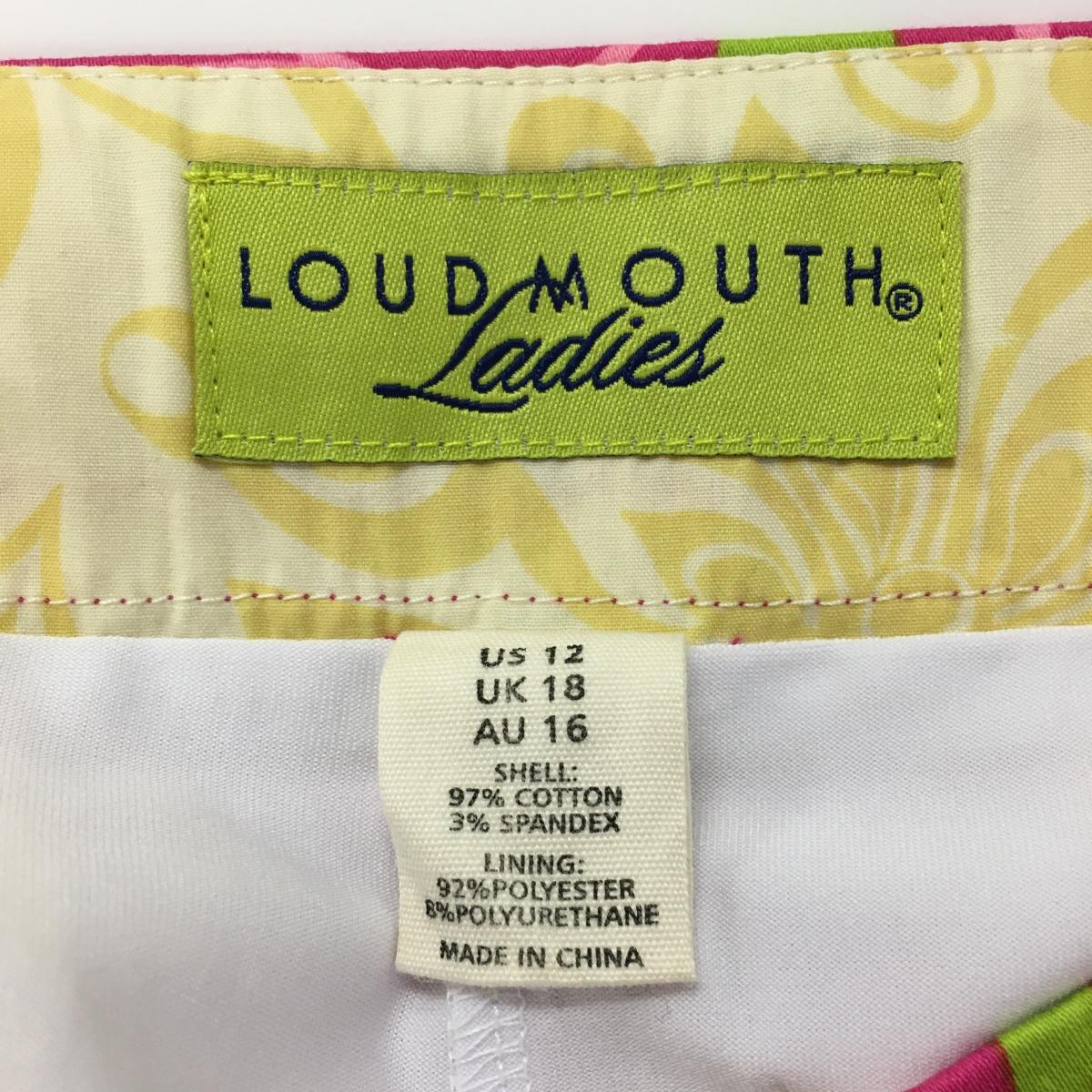 【超美品】ラウドマウス スカート ピンク×グリーン マーブル柄 ロゴ刺しゅう レディース US-12 ゴルフウェア 大きいサイズ LOUDMOUTH