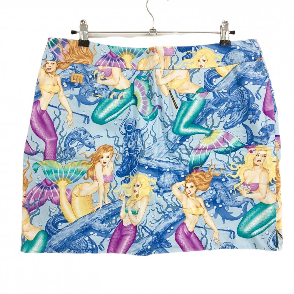 【超美品】ラウドマウス スカート ライトブルー×マルチカラー 総柄 人魚 水中 レディース US-14 ゴルフウェア 大きいサイズ LOUDMOUTH