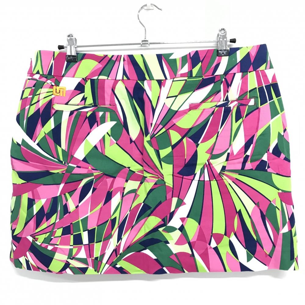 【美品】ラウドマウス スカート ピンク×グリーン 総柄 ピンクシャンペン レディース US-14 ゴルフウェア 大きいサイズ LOUDMOUTH