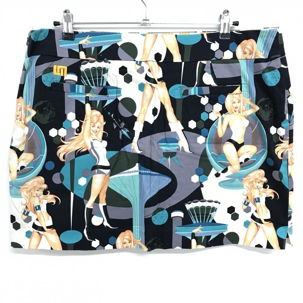 ラウドマウス スカート 黒×グリーン 総柄 女性 惑星 ロゴ刺しゅう レディース US-16 ゴルフウェア 大きいサイズ LOUDMOUTH