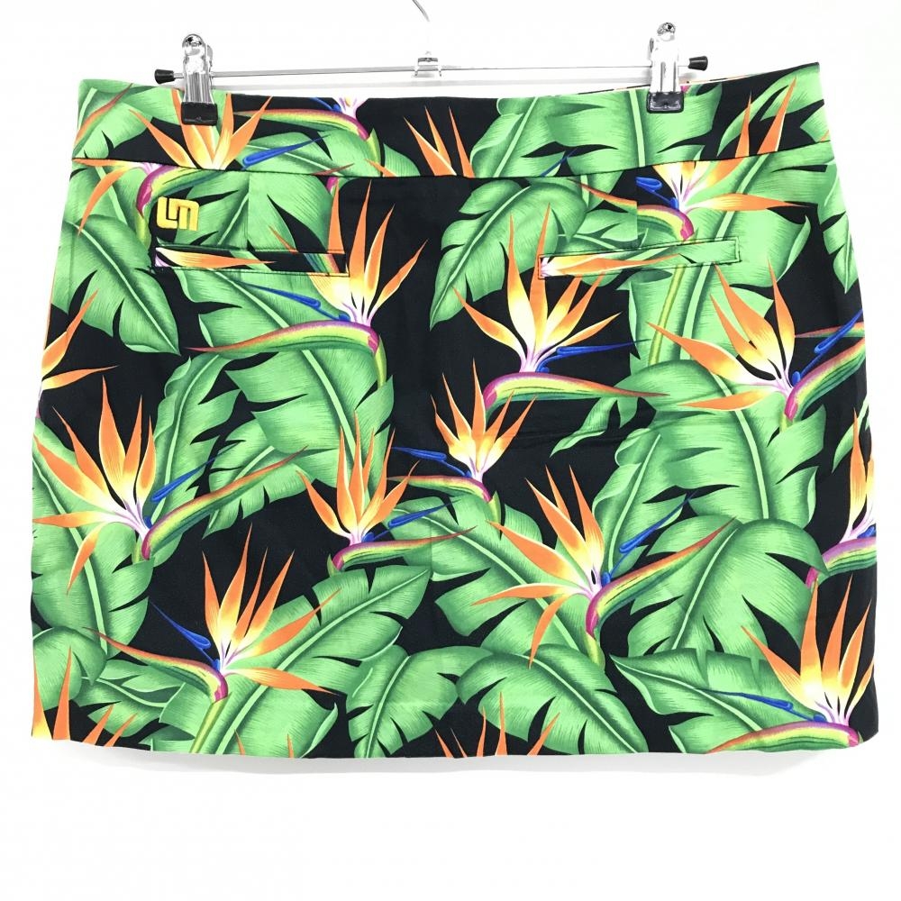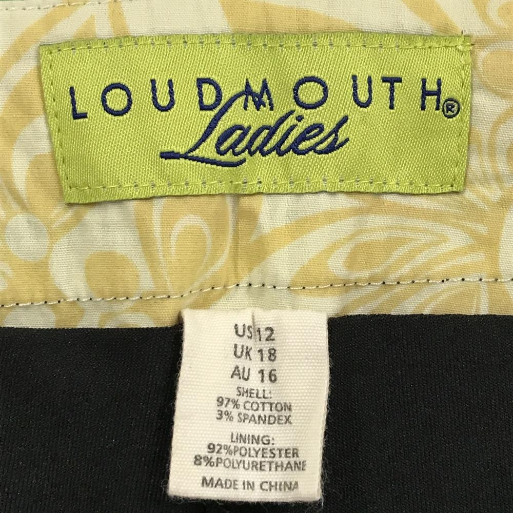 【美品】ラウドマウス スカート 黒×グリーン リーフ総柄 ロゴ刺しゅう レディース US-12 ゴルフウェア 大きいサイズ LOUDMOUTH