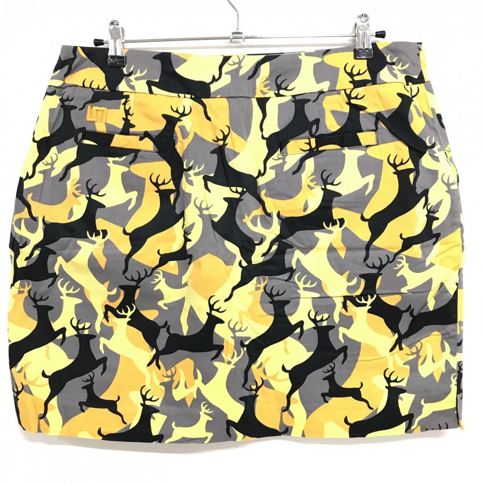 【超美品】ラウドマウス スカート グレー×イエロー シカ総柄 ロゴ刺しゅう レディース US-14 ゴルフウェア 大きいサイズ LOUDMOUTH