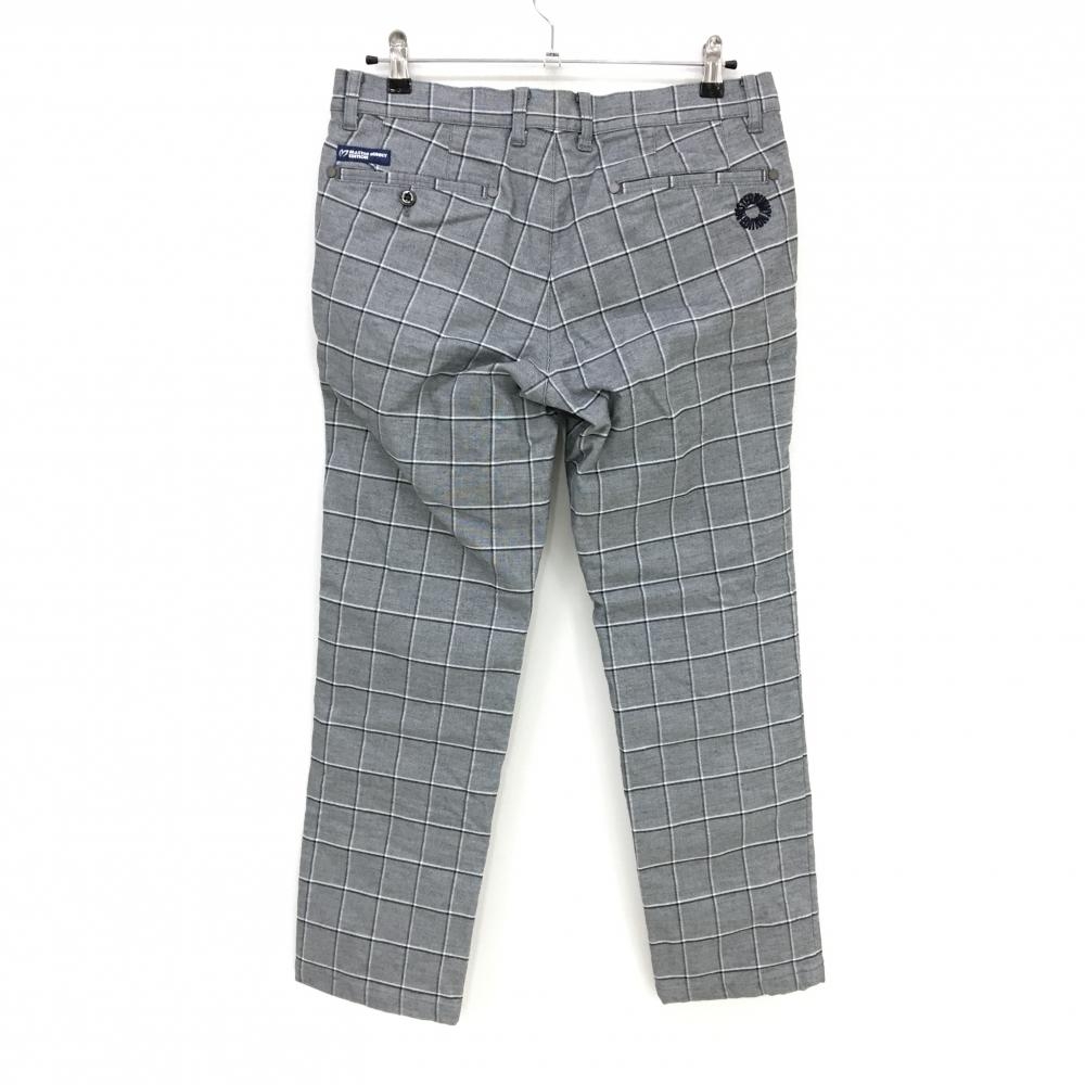 【美品】マスターバニー パンツ グレー系×黒 格子柄 蓄熱裏地 ロゴ刺しゅう メンズ 5(L) ゴルフウェア MASTER BUNNY EDITION