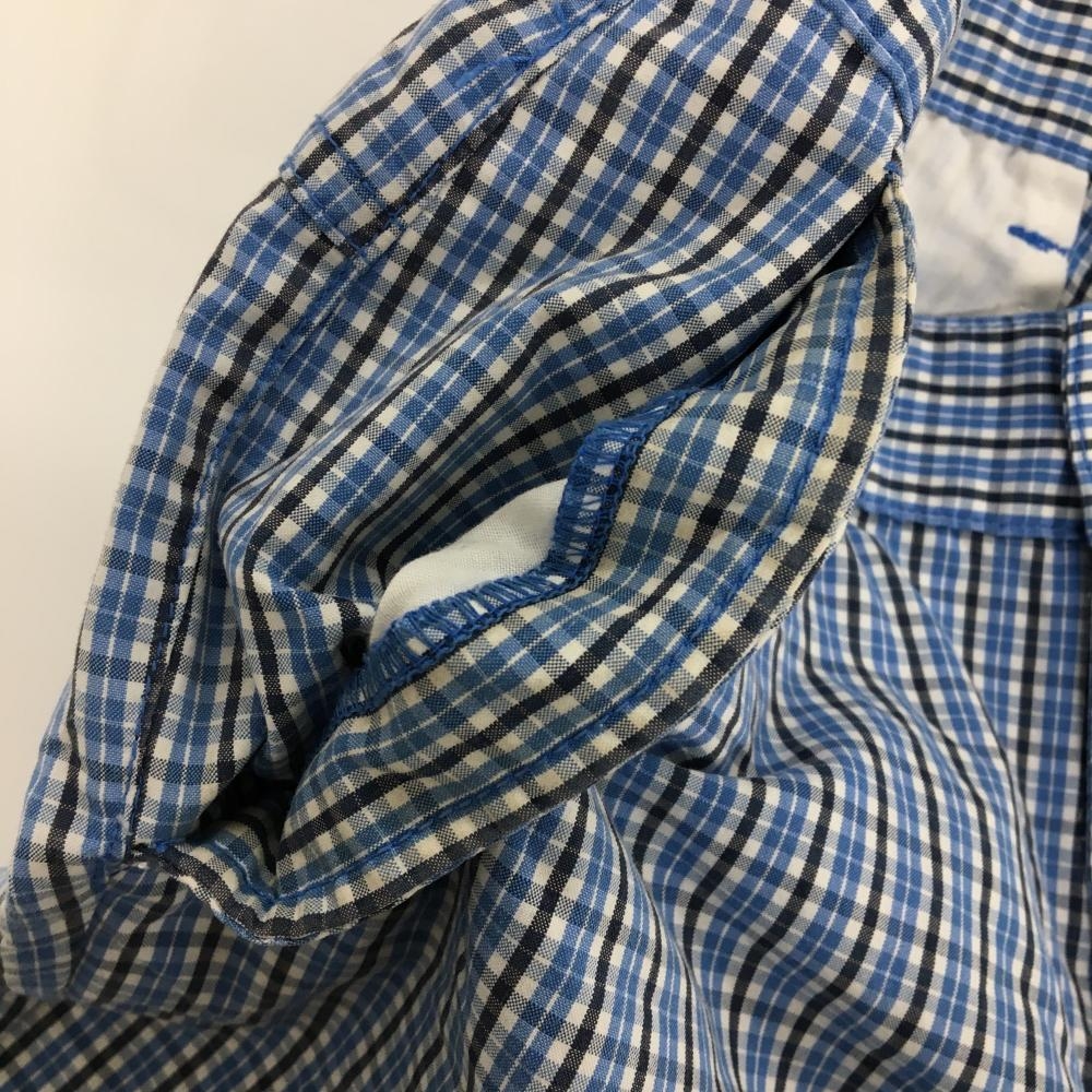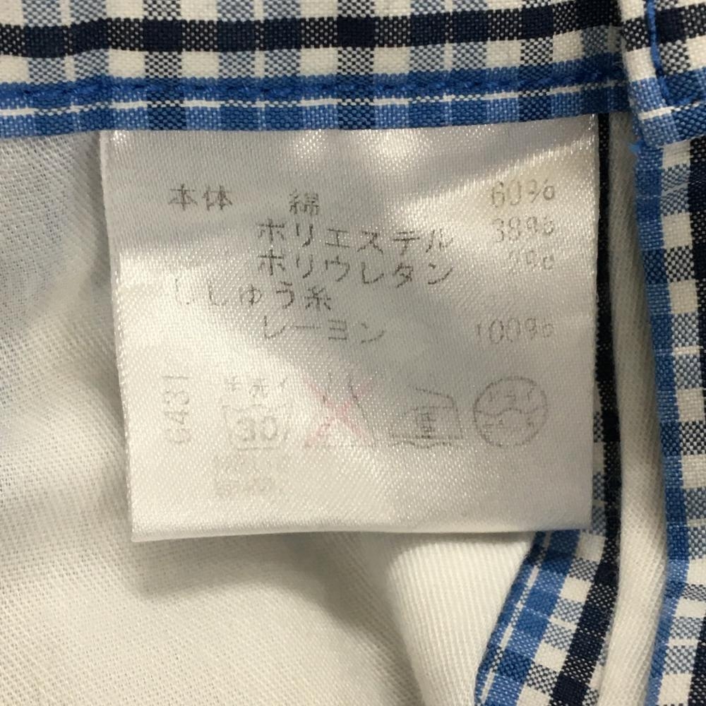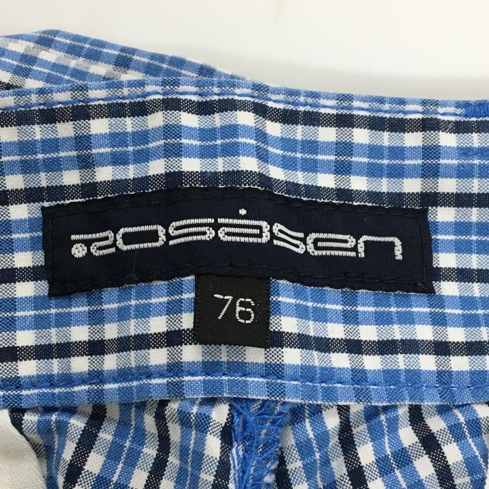【美品】ロサーセン パンツ ライトブルー×白×ダークネイビー チェック 薄手 メンズ 76 ゴルフウェア Rosasen
