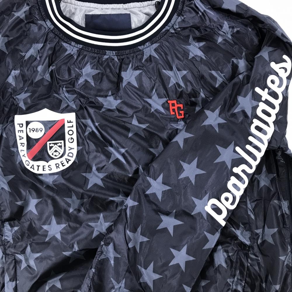 【美品】パーリーゲイツ スニード ネイビー×グレー 星総柄 蓄熱裏地 ブルゾン レディース 2(L) ゴルフウェア PEARLY GATES