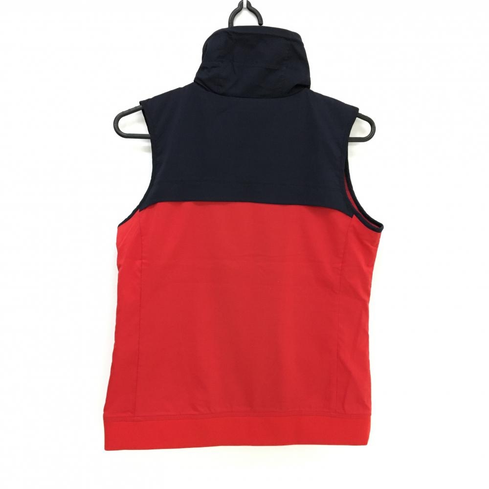 【超美品】マンシングウェア アウターベスト レッド×ネイビー ネックドローコード 裏地メッシュ レディース M ゴルフウェア Munsingwear