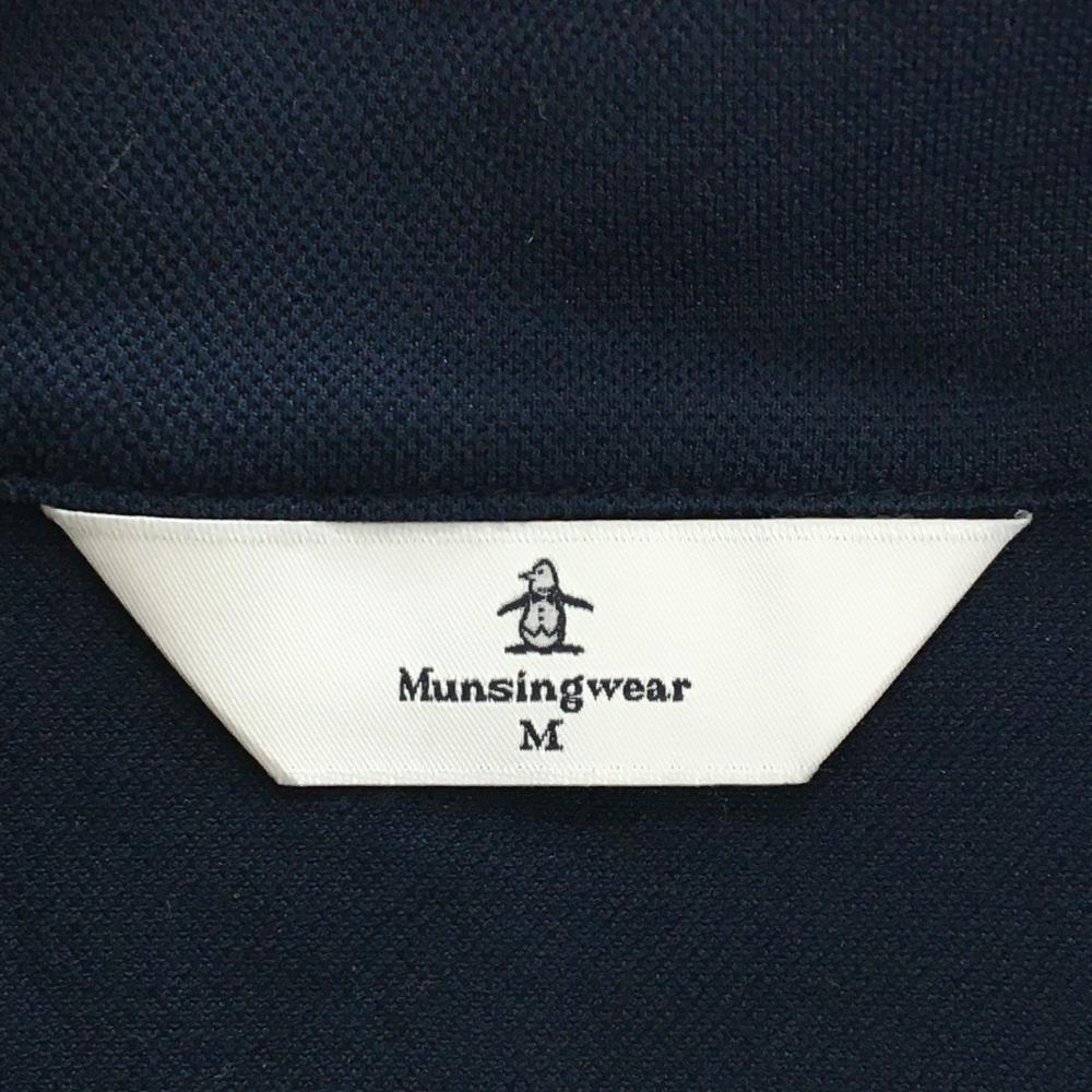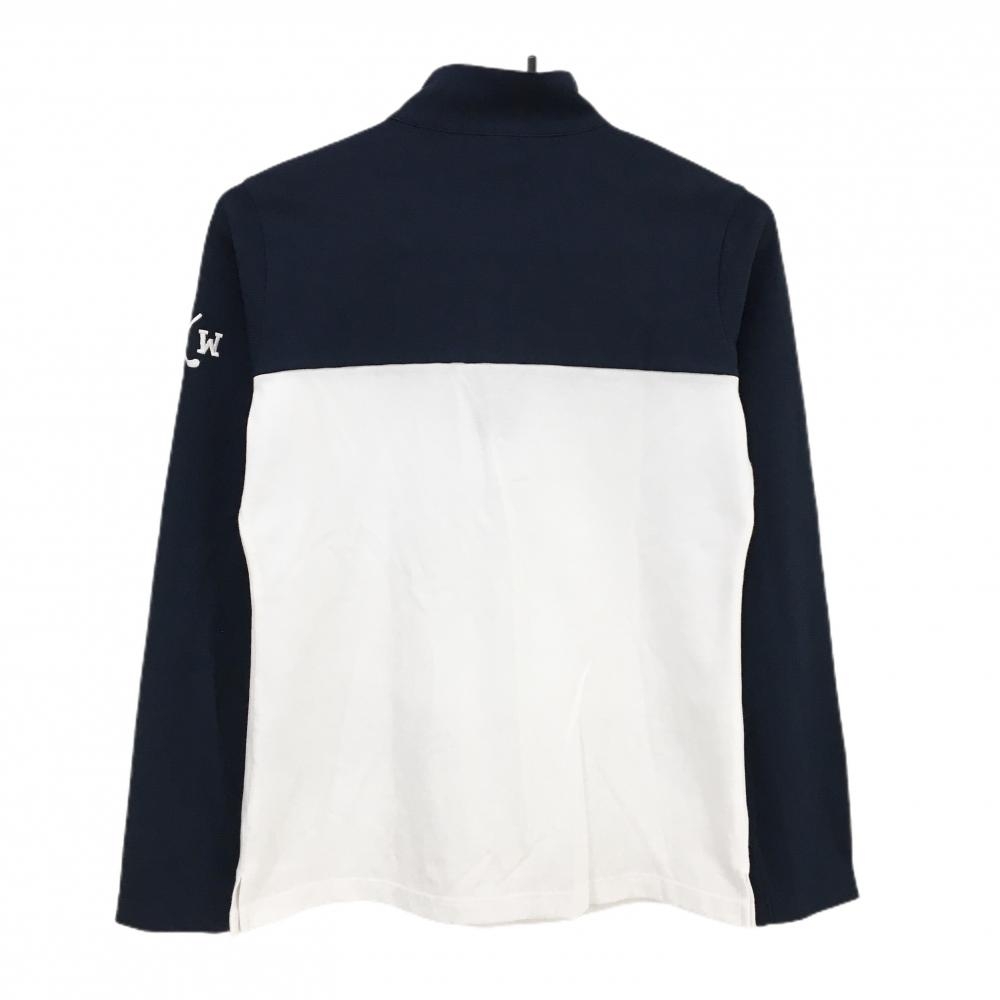 【美品】マンシングウェア 長袖ハイネックシャツ 白×ネイビー ハーフジップ ペンギン刺しゅう レディース M ゴルフウェア Munsingwear