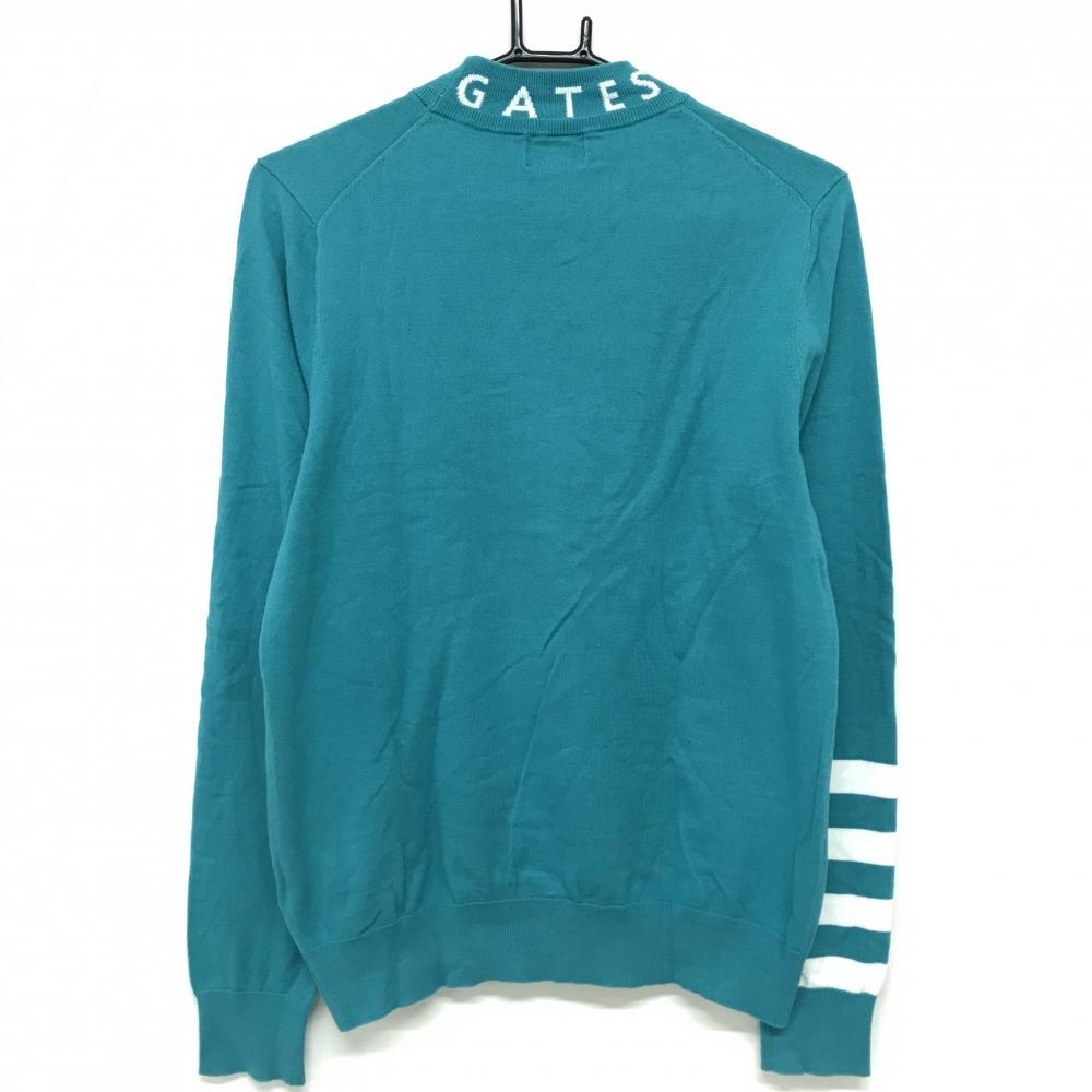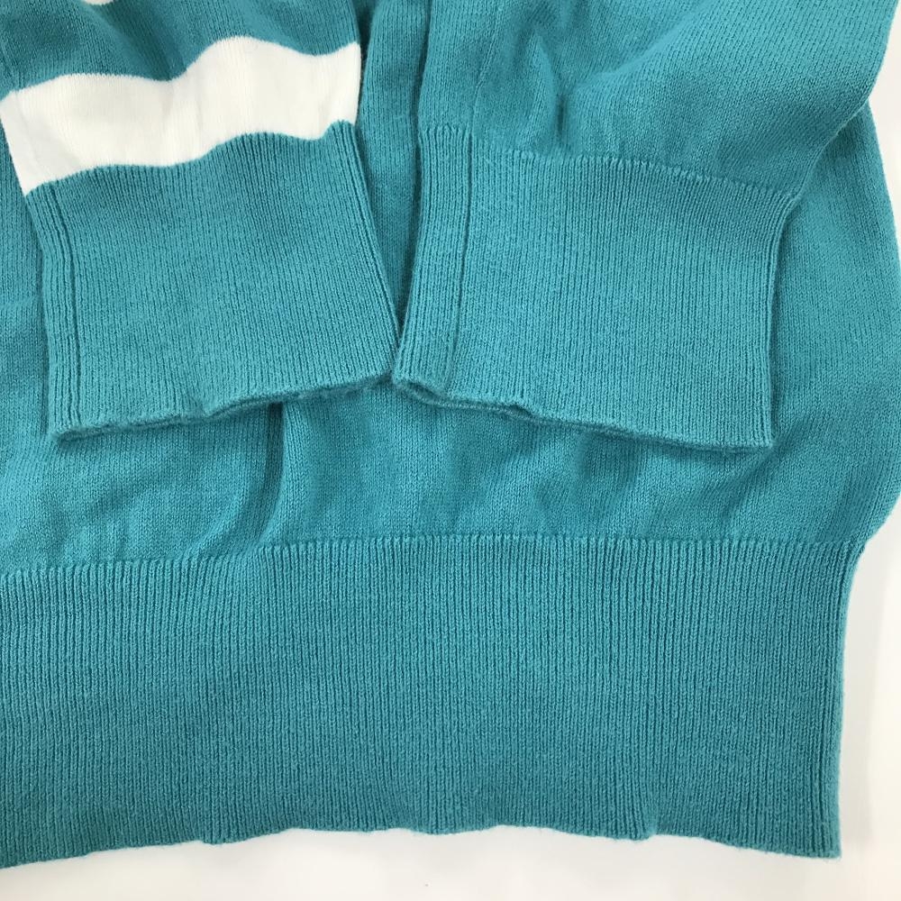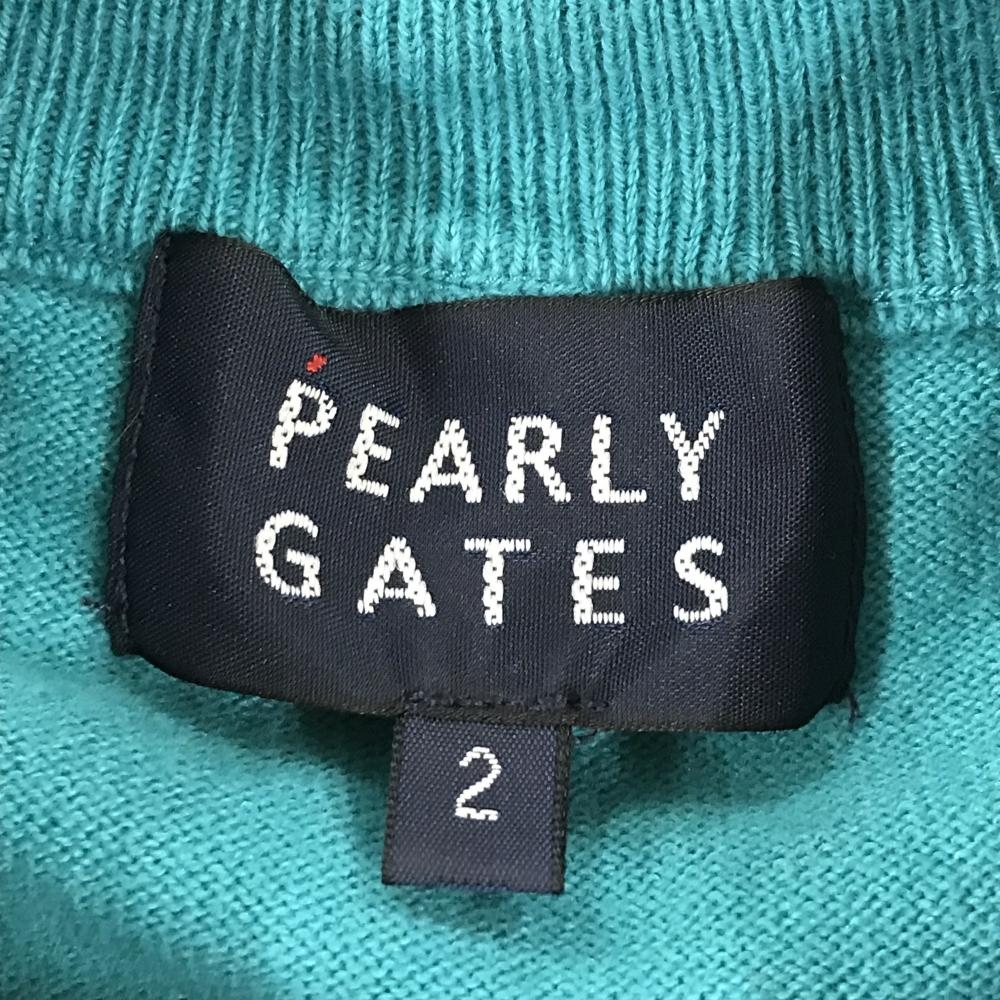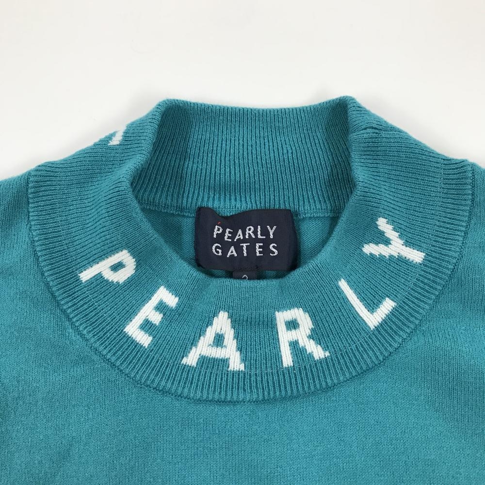パーリーゲイツ ハイネックセーター ターコイズブルー×白 ネックロゴ ニット レディース 2(L) ゴルフウェア 2023年モデル PEARLY GATES