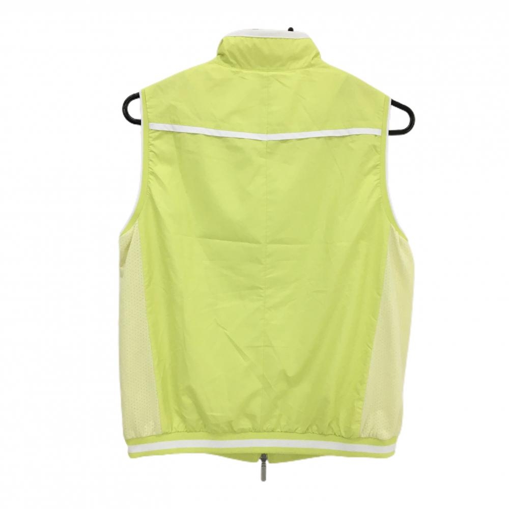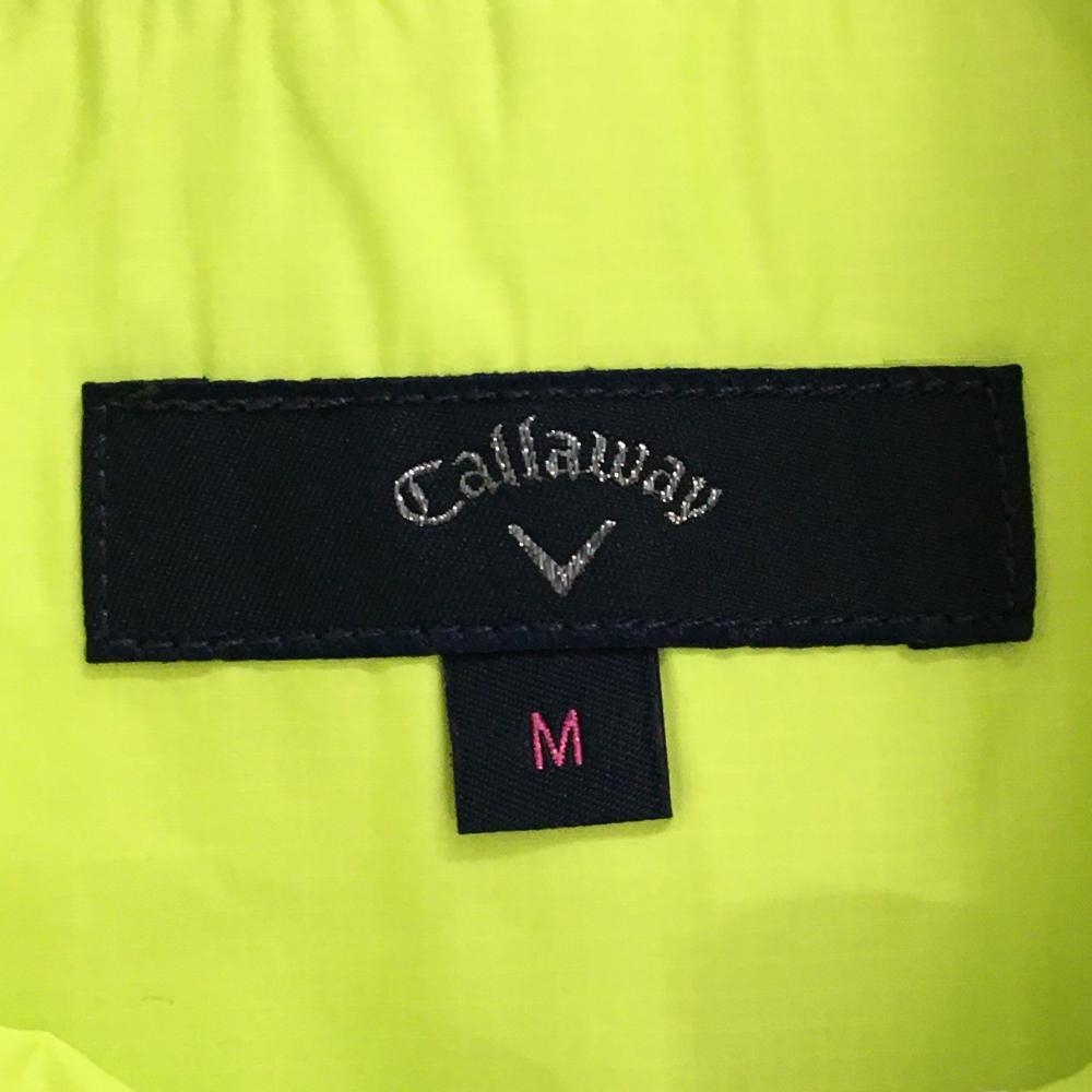 【美品】キャロウェイ アウターベスト イエローグリーン 格子地模様 ロゴ白 ダブルジップ レディース M ゴルフウェア Callaway