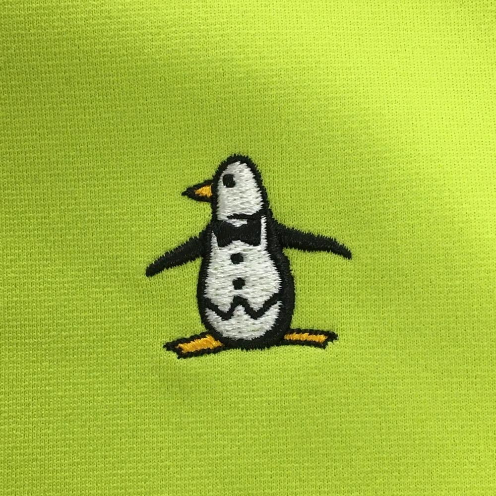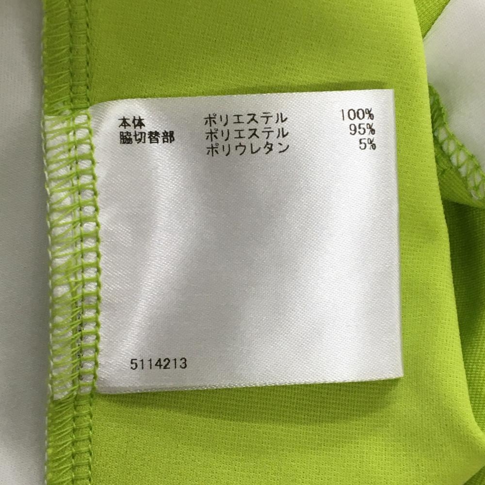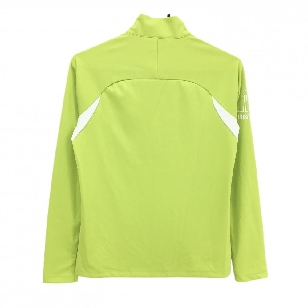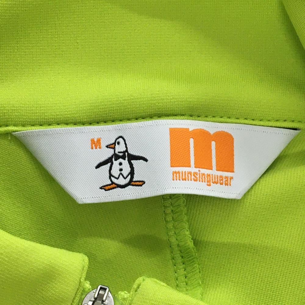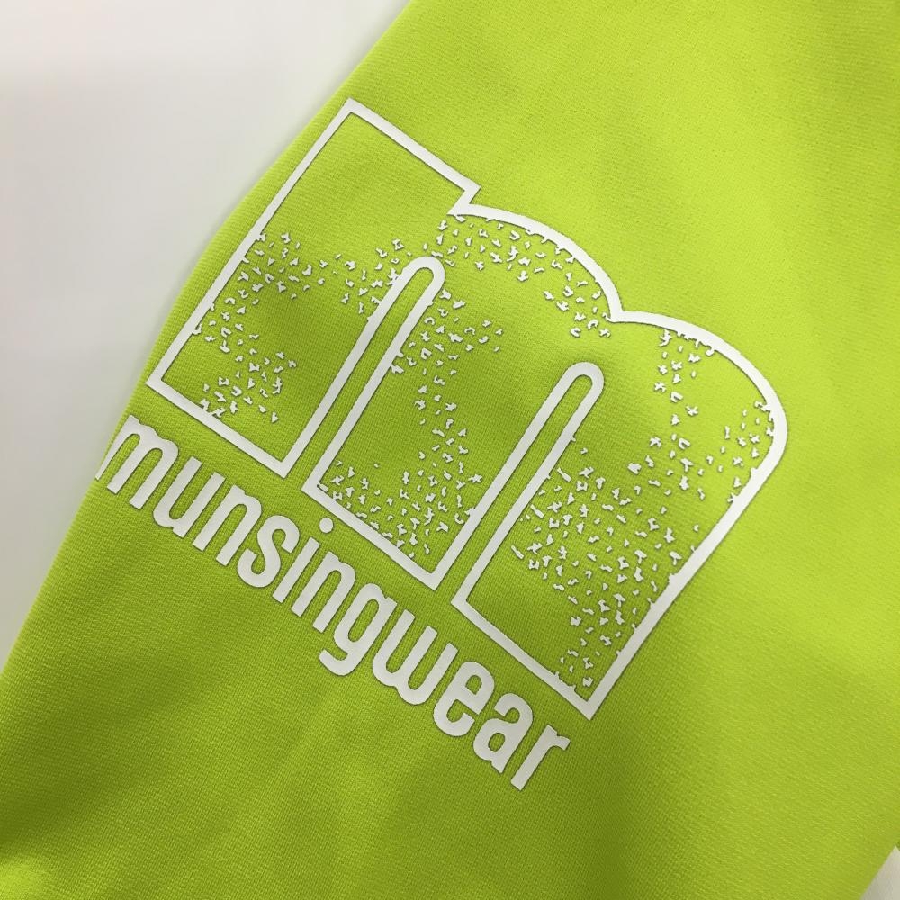 【超美品】マンシングウェア 長袖ハイネックシャツ イエローグリーン×白 ハーフジップ レディース M ゴルフウェア Munsingwear
