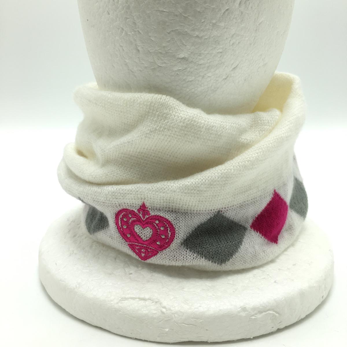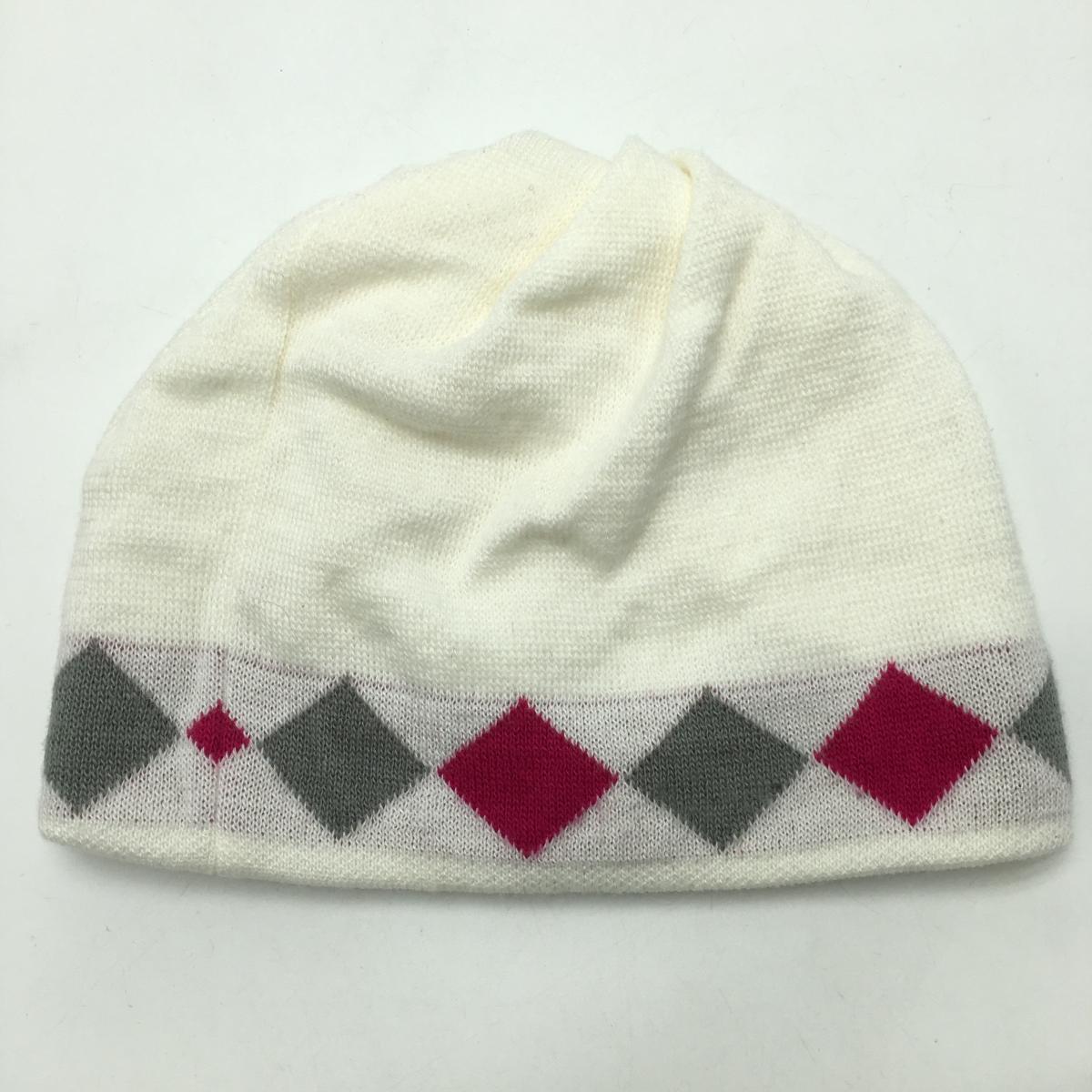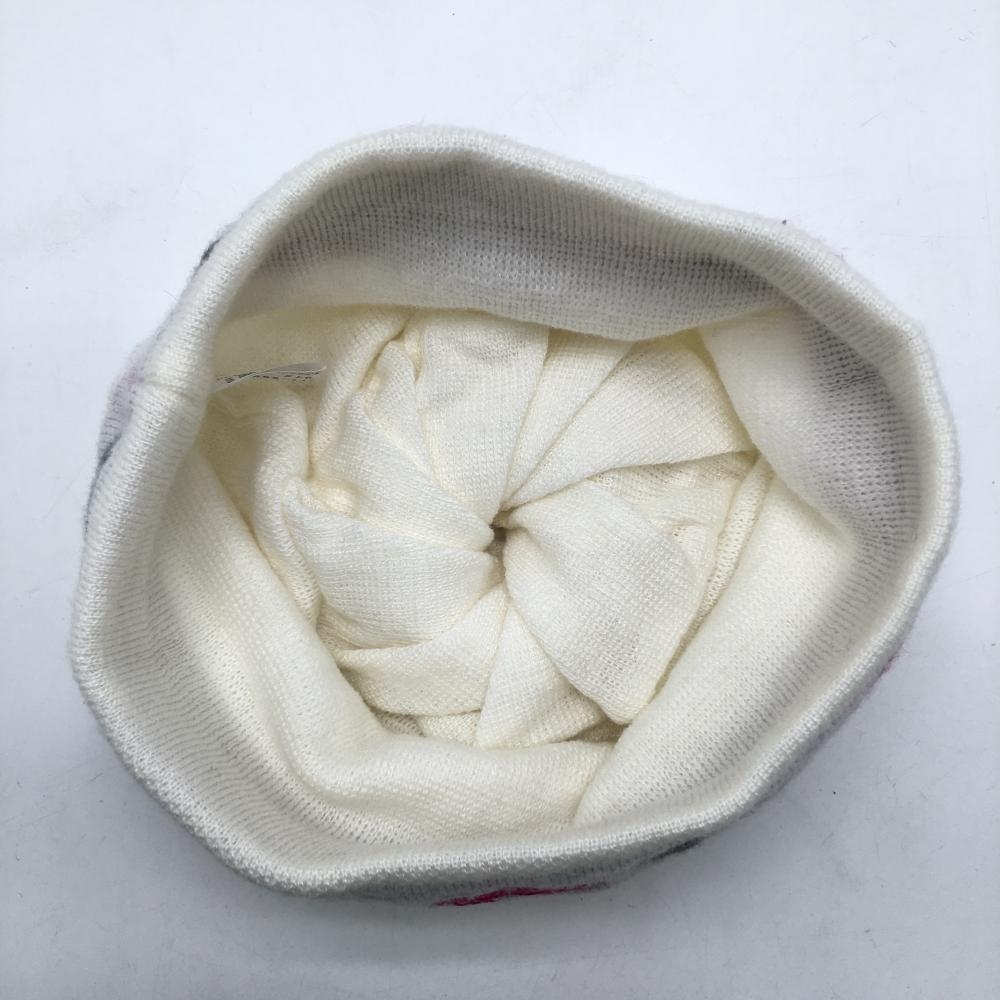 【超美品】ビバハート ニット帽 白×ピンク×グレー 一部スクエア柄 ウール混 レディース 40(M) ゴルフウェア VIVA HEART