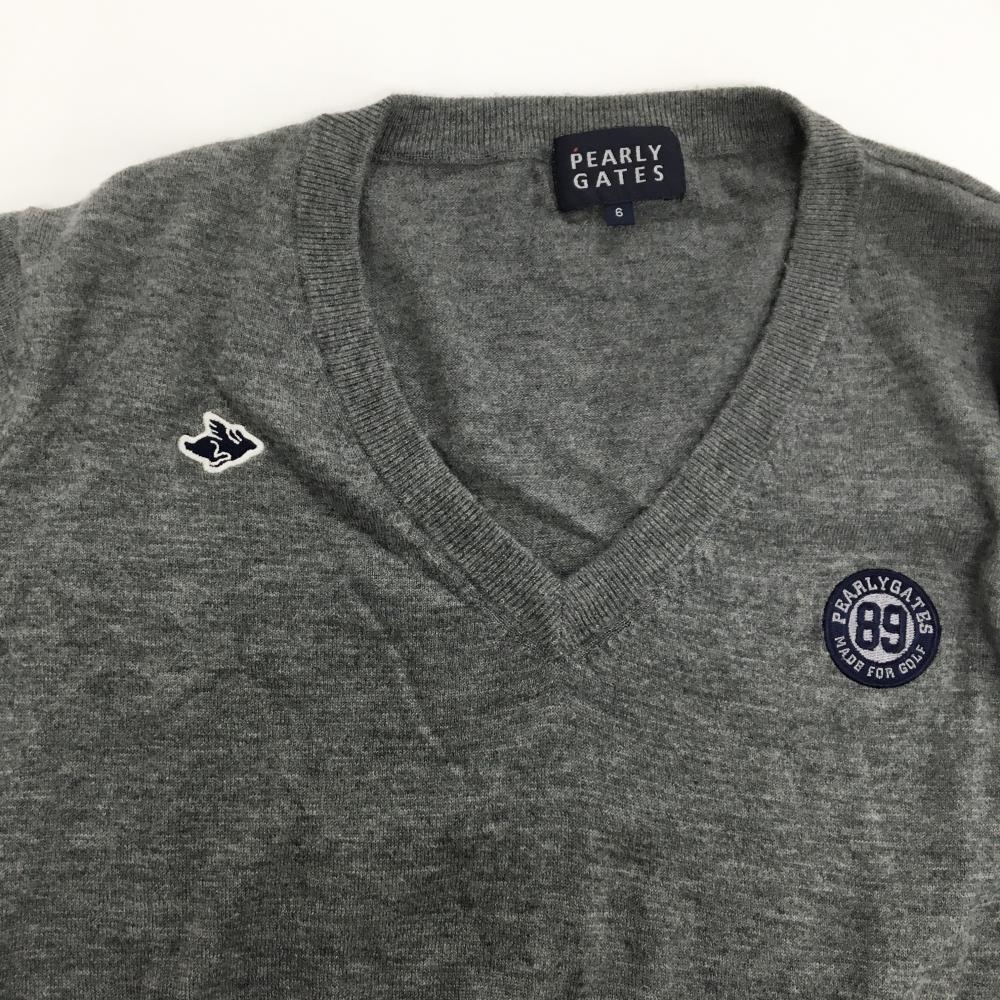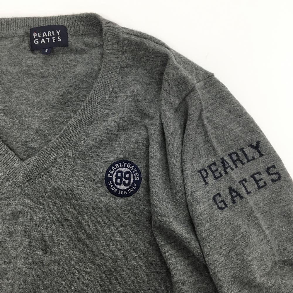 【美品】パーリーゲイツ セーター グレー Vネック 薄手 ニット メンズ 6(XL) ゴルフウェア PEARLY GATES