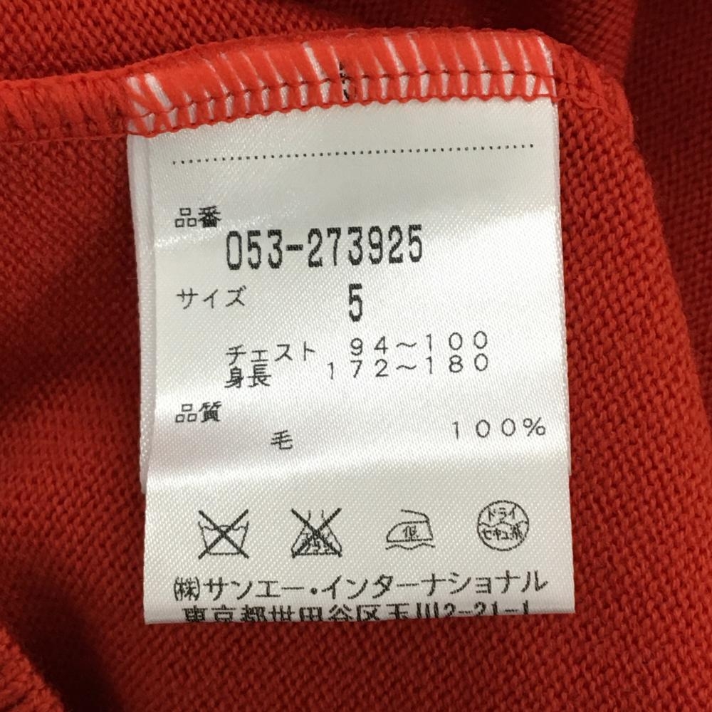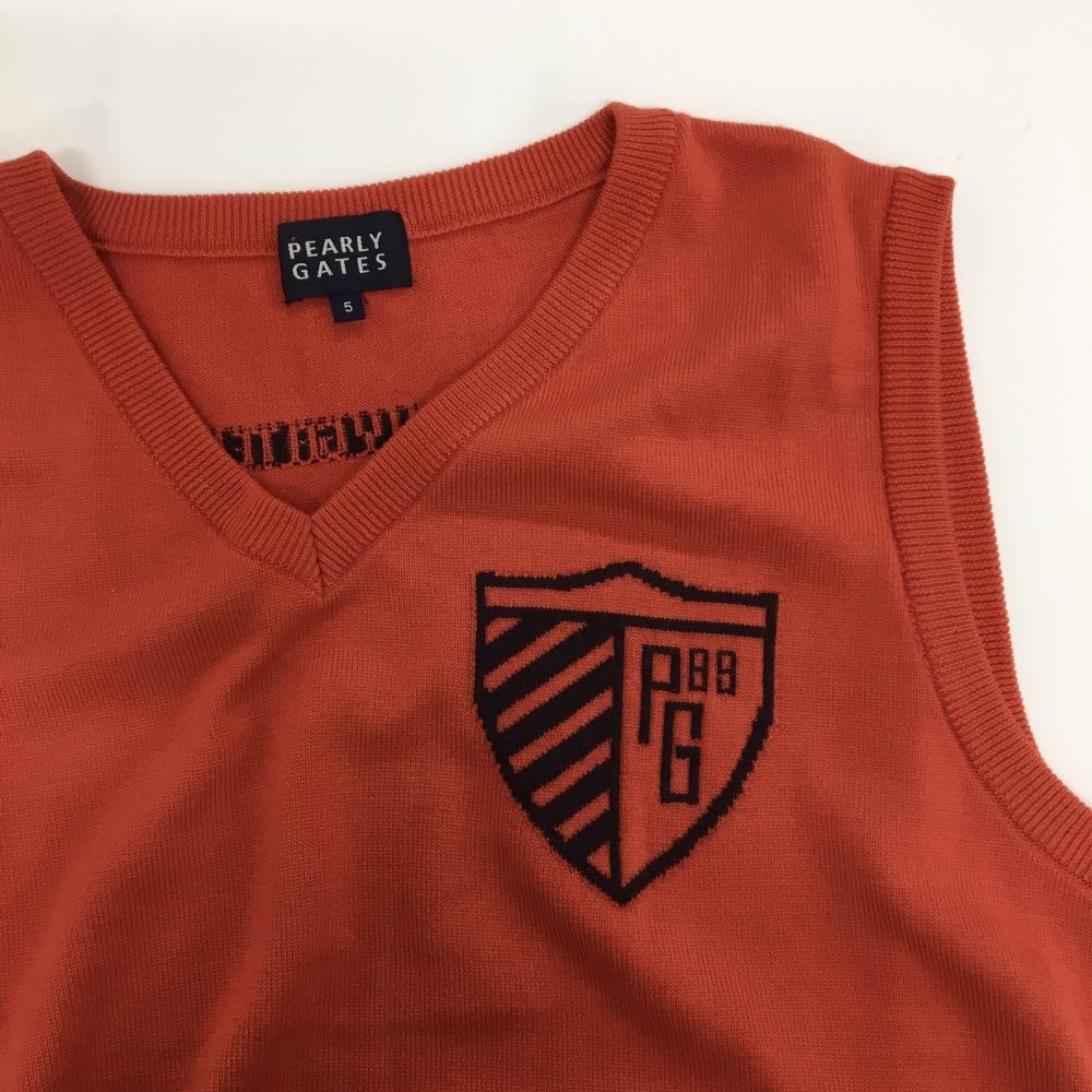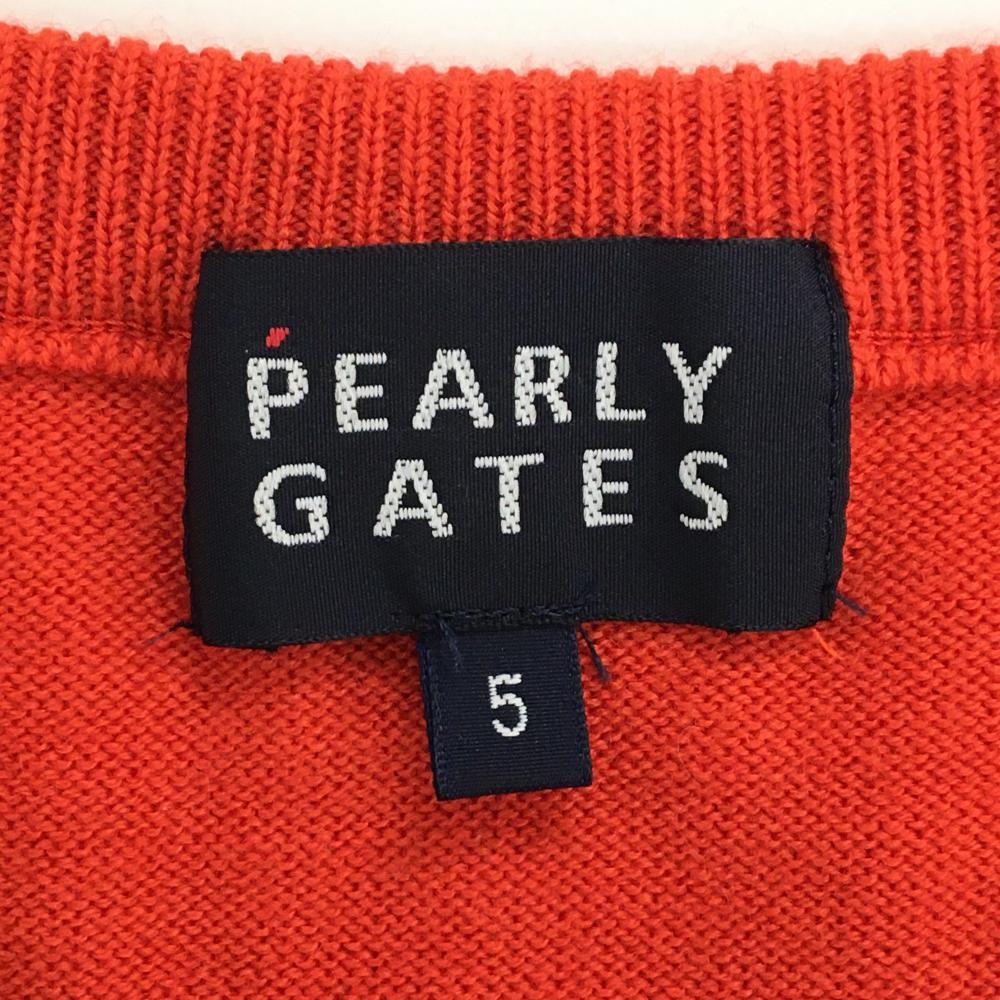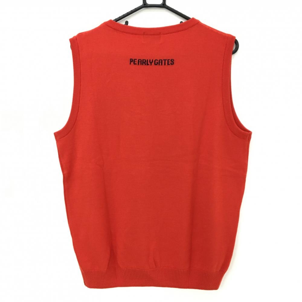 【超美品】パーリーゲイツ ニットベスト オレンジレッド Vネック ウール メンズ 5(L) ゴルフウェア PEARLY GATES