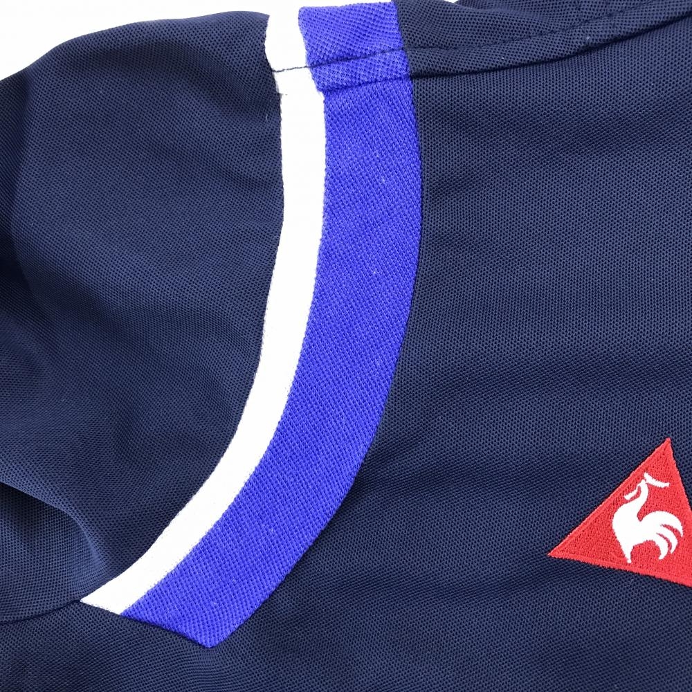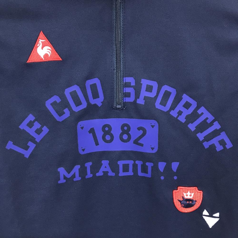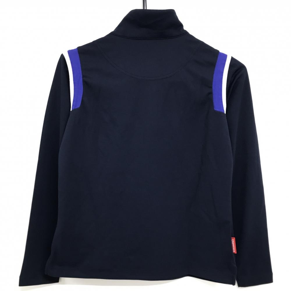 【超美品】ルコック 長袖ハイネックシャツ ダークネイビー×パープル ロゴプリント レディース M ゴルフウェア le coq sportif