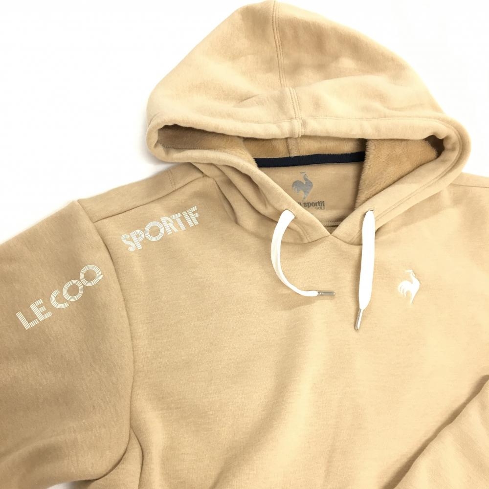 【美品】ルコックゴルフ パーカー ライトブラウン 裏ボア ロゴ刺しゅう レディース M ゴルフウェア le coq sportif