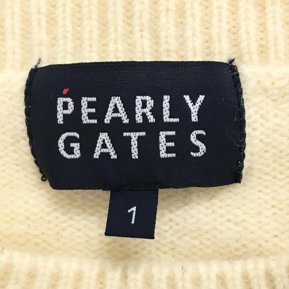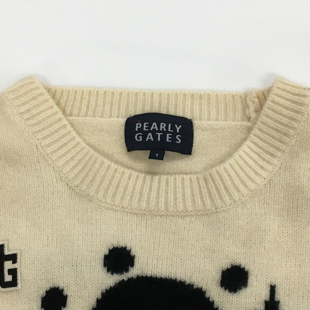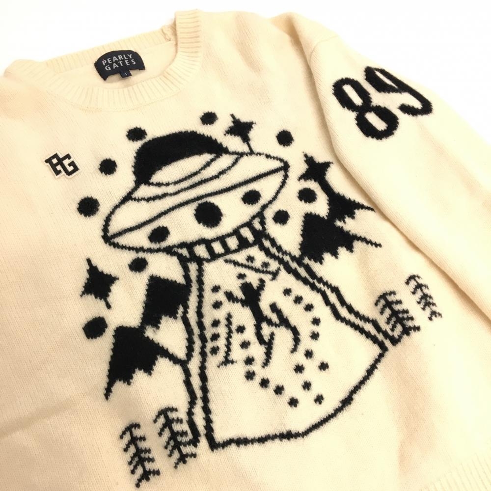 【美品】パーリーゲイツ セーター アイボリー×黒 前面UFO柄 ウール100% ニット レディース 1(M) ゴルフウェア PEARLY GATES