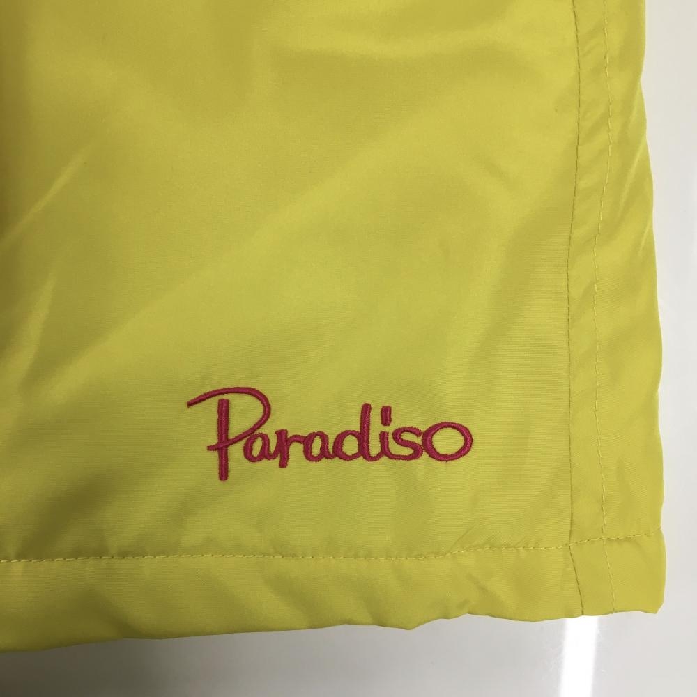 【美品】パラディーゾ 中綿スカート イエロー×ピンク ロゴ刺しゅう ポケット口パイピング レディース M ゴルフウェア Paradiso