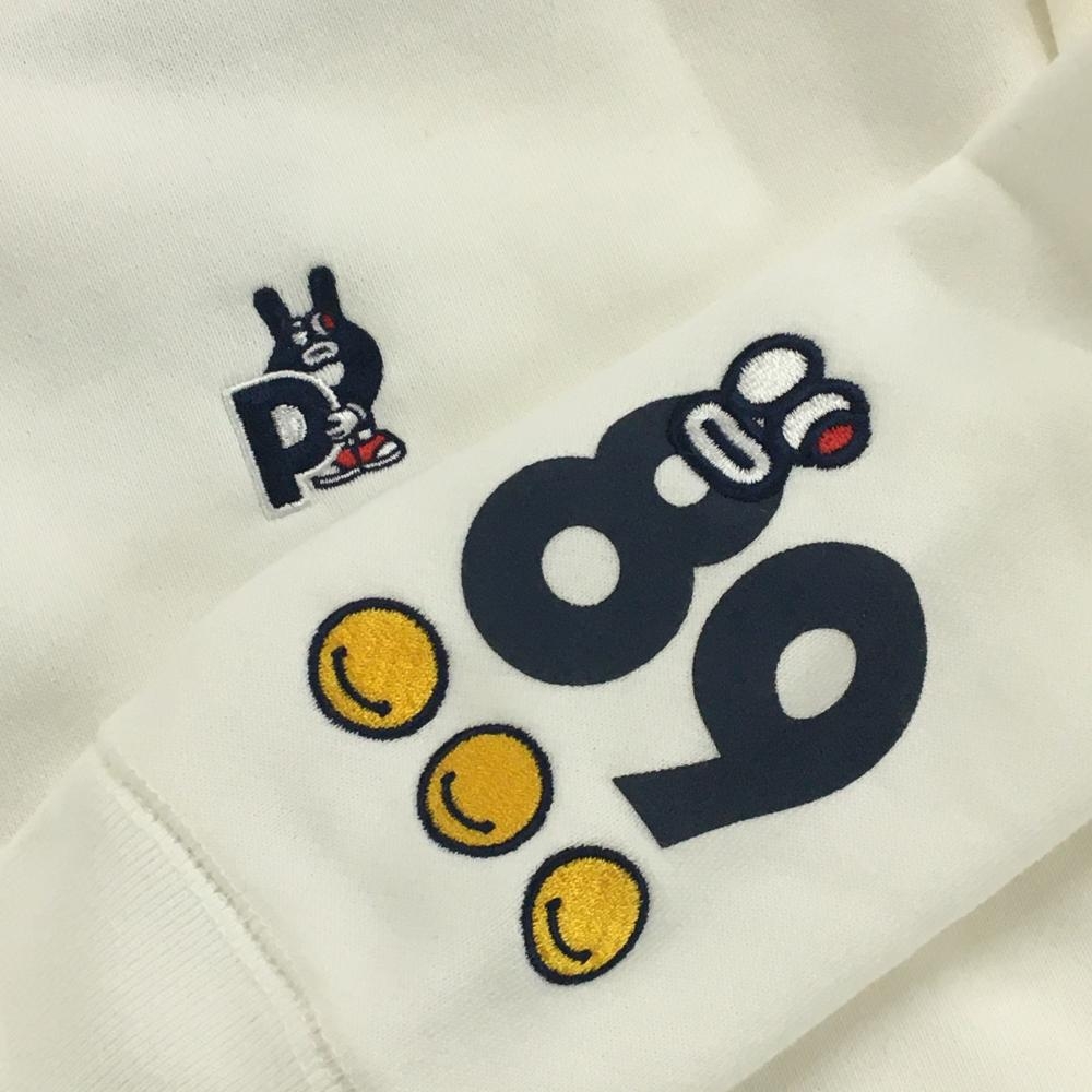 【美品】パーリーゲイツ トレーナー 白 バックプリント ニコちゃん スマイル レディース 0(S) ゴルフウェア PEARLY GATES