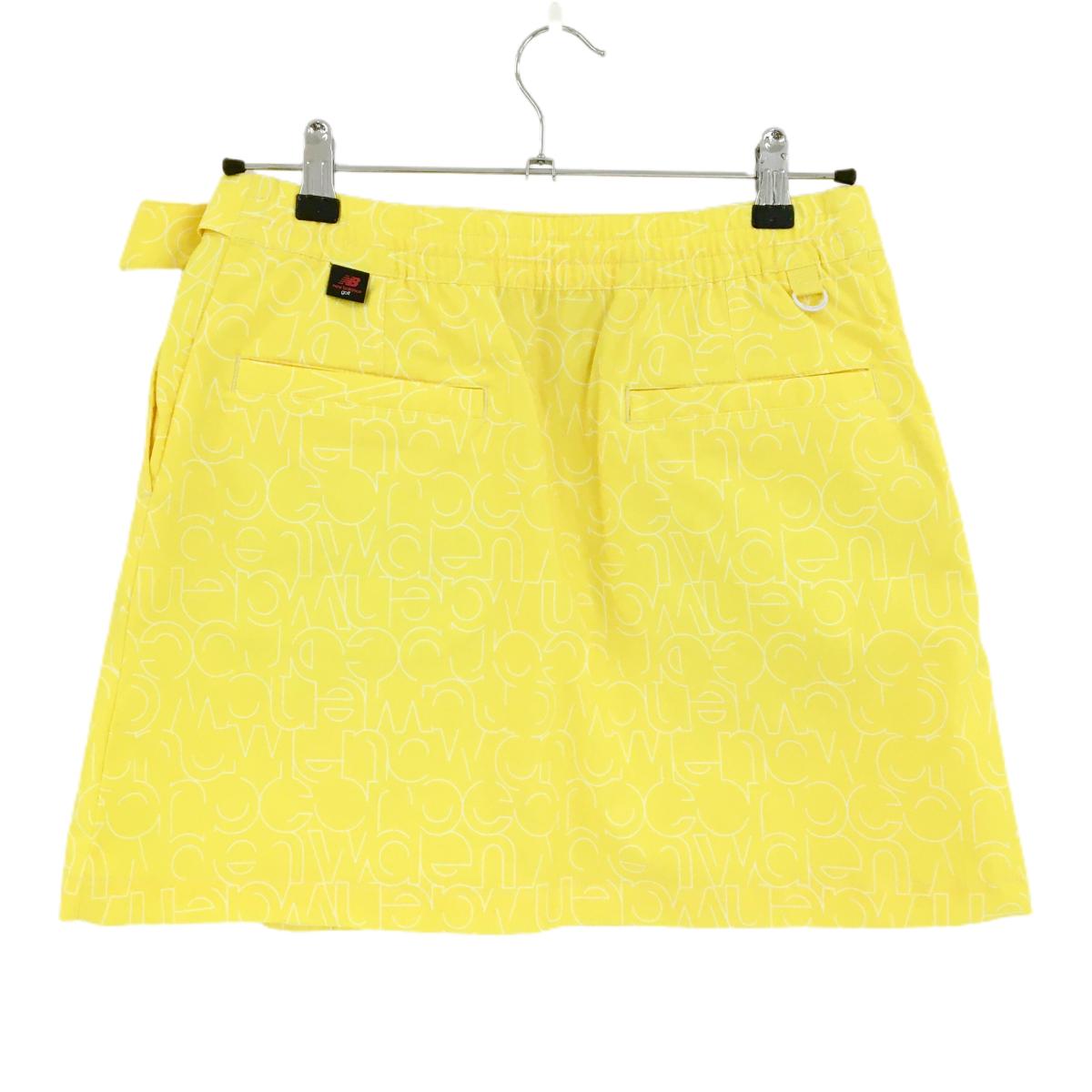 【超美品】ニューバランスゴルフ スカート イエロー×白 総柄 ラップスカート風 ストレッチ レディース 2(L) ゴルフウェア New Balance