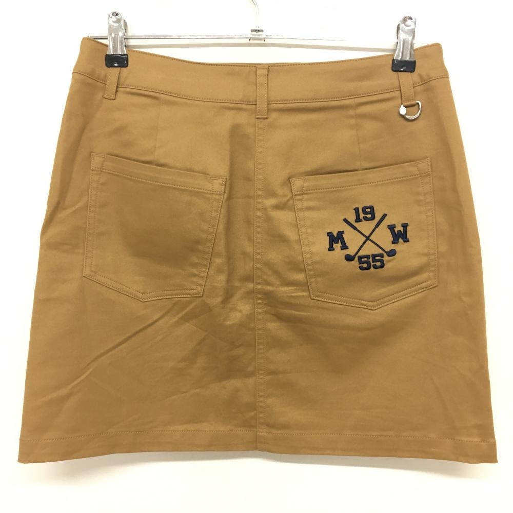 【美品】マンシングウェア スカート ライトブラウン×ネイビー ロゴ刺しゅう 微起毛 レディース 9 ゴルフウェア Munsingwear