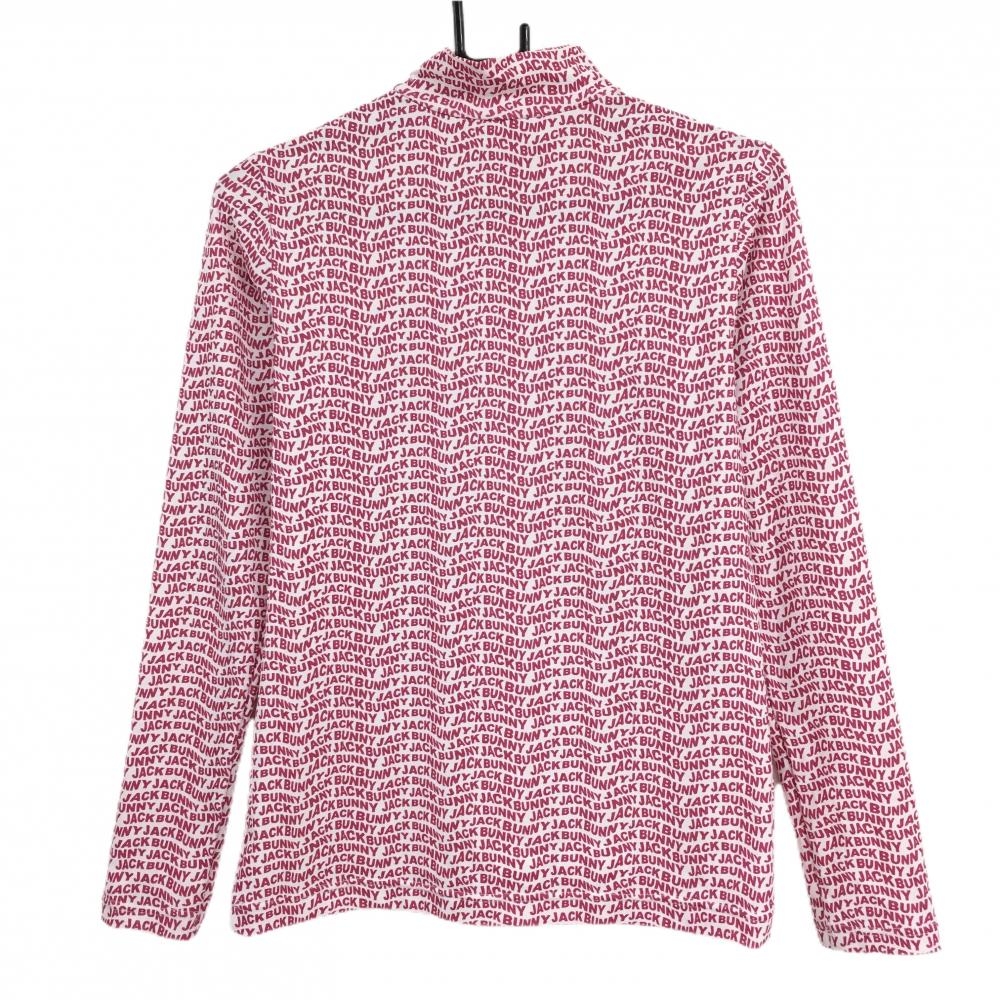 【超美品】ジャックバニー 長袖ハイネックシャツ 白×ピンク ロゴ総柄 インナー レディース 1(M) ゴルフウェア Jack Bunny
