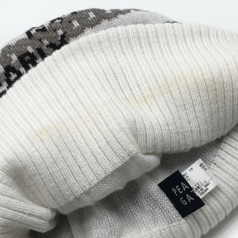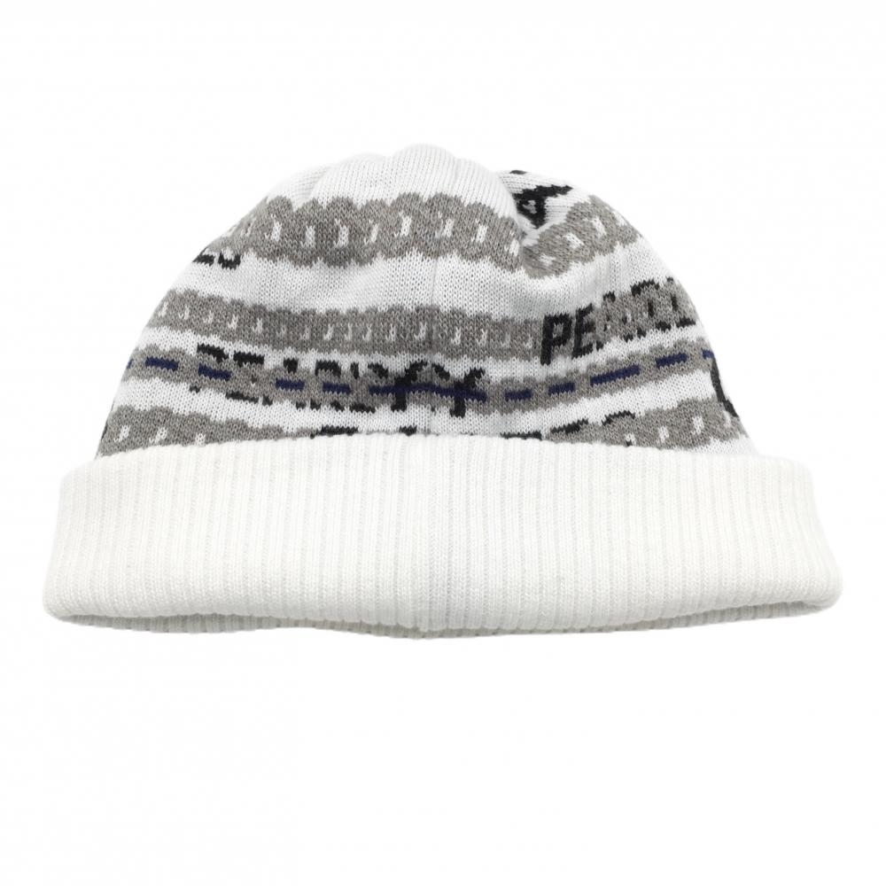【美品】パーリーゲイツ ニット帽 白×グレー 総柄 ロゴ 額薄汚れ FR ゴルフウェア PEARLY GATES