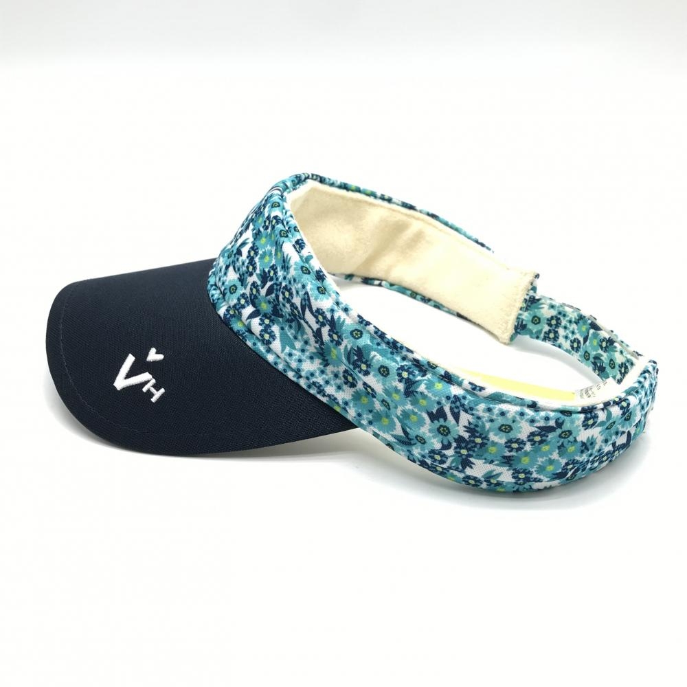 【新品】ビバハート サンバイザー 白×グリーン系×ネイビー 小花柄 つばロゴ レディース 40 ゴルフウェア VIVA HEART